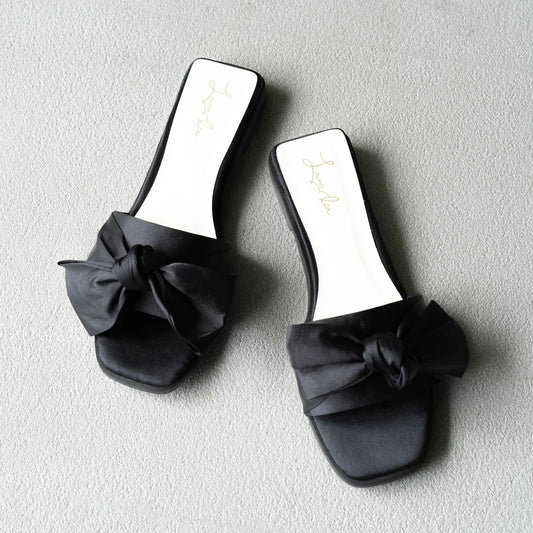 日本製 Launa Lea 絲帶方頭平底涼鞋 (524) Black