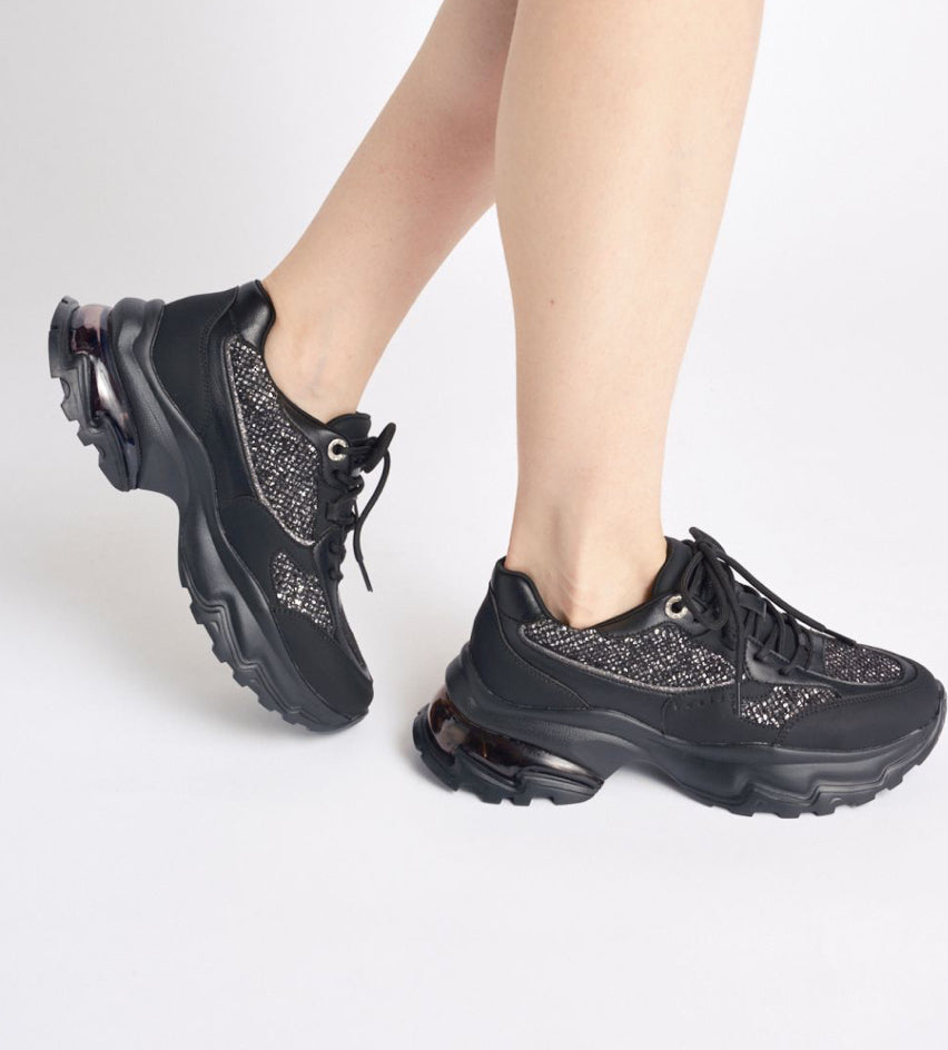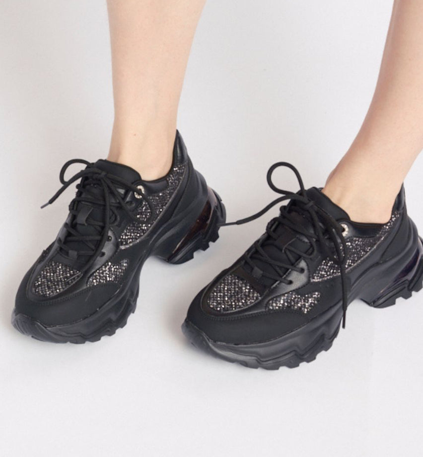 【新品預訂】日本潮牌Lucida 黑色 Merga 閃光透氣鞋底厚底運動鞋( 4438 BLK )