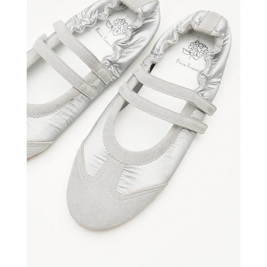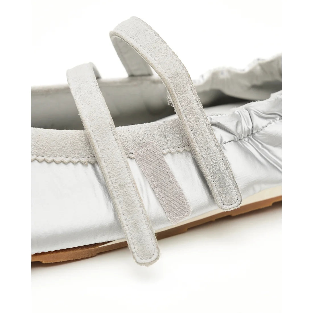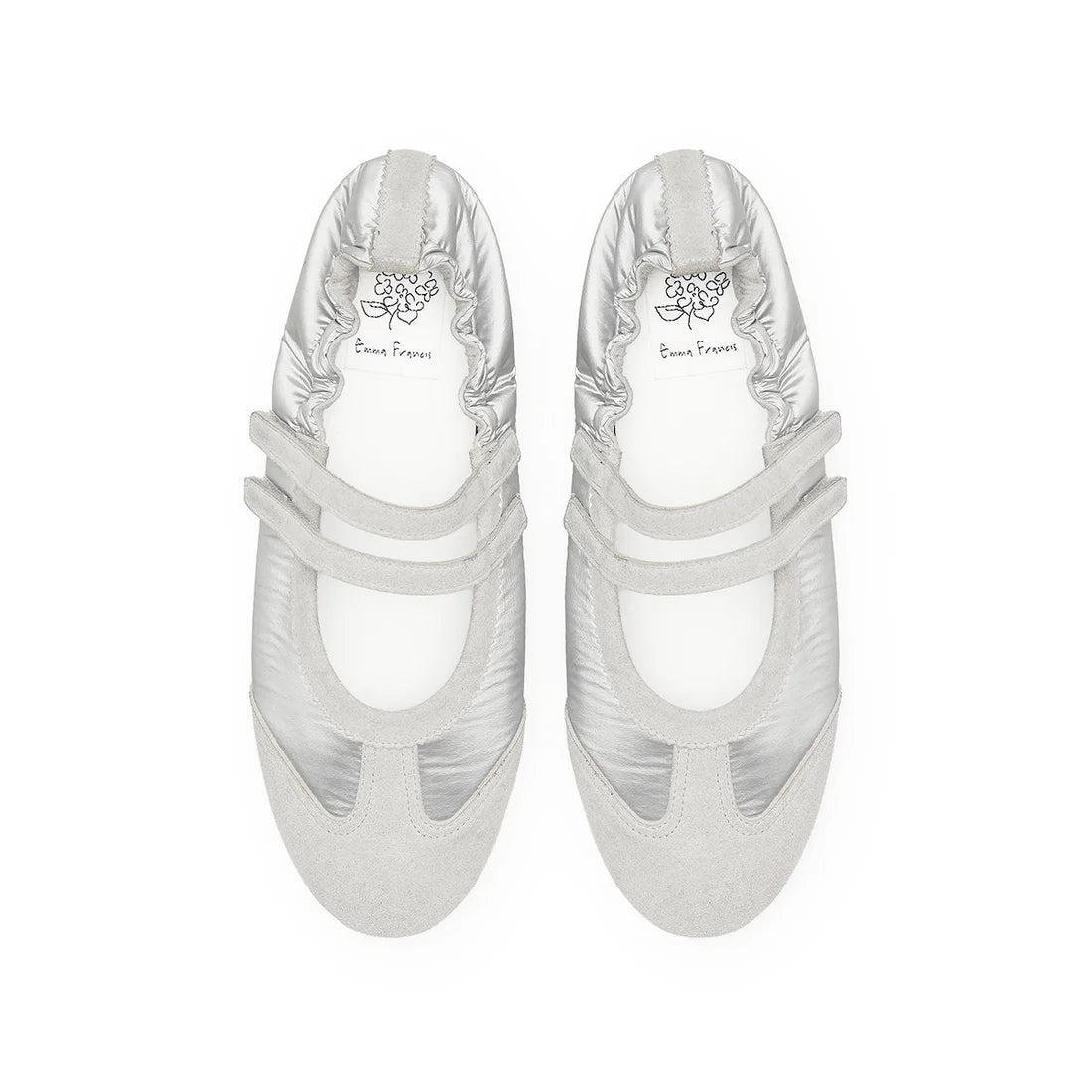 【新品預訂】日本製Emma Francis 彈性褶邊瑪麗珍芭蕾舞鞋(銀色天鵝絨皮革)(09k-NY 162)