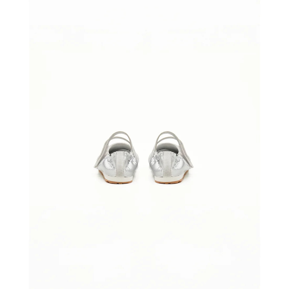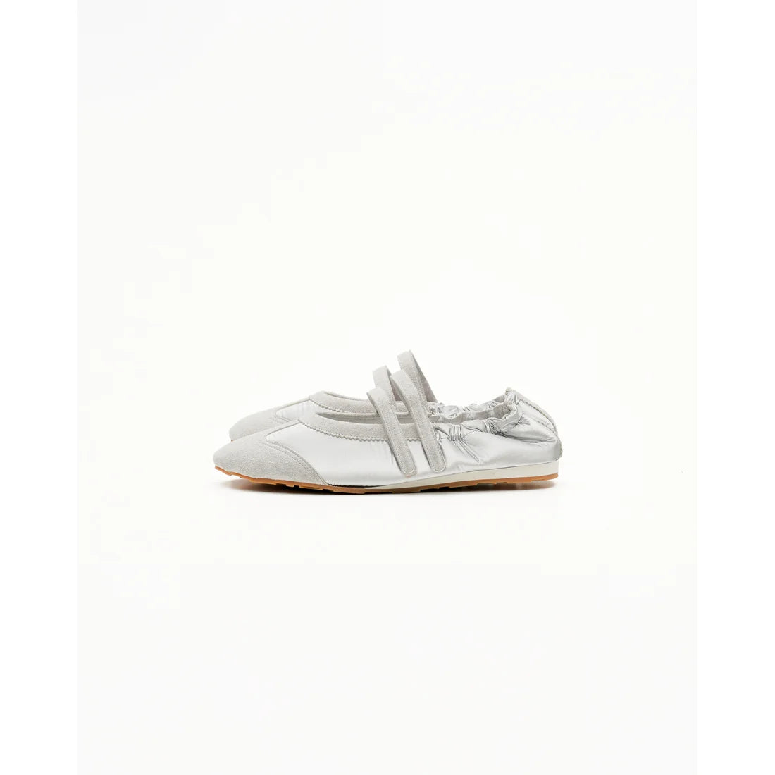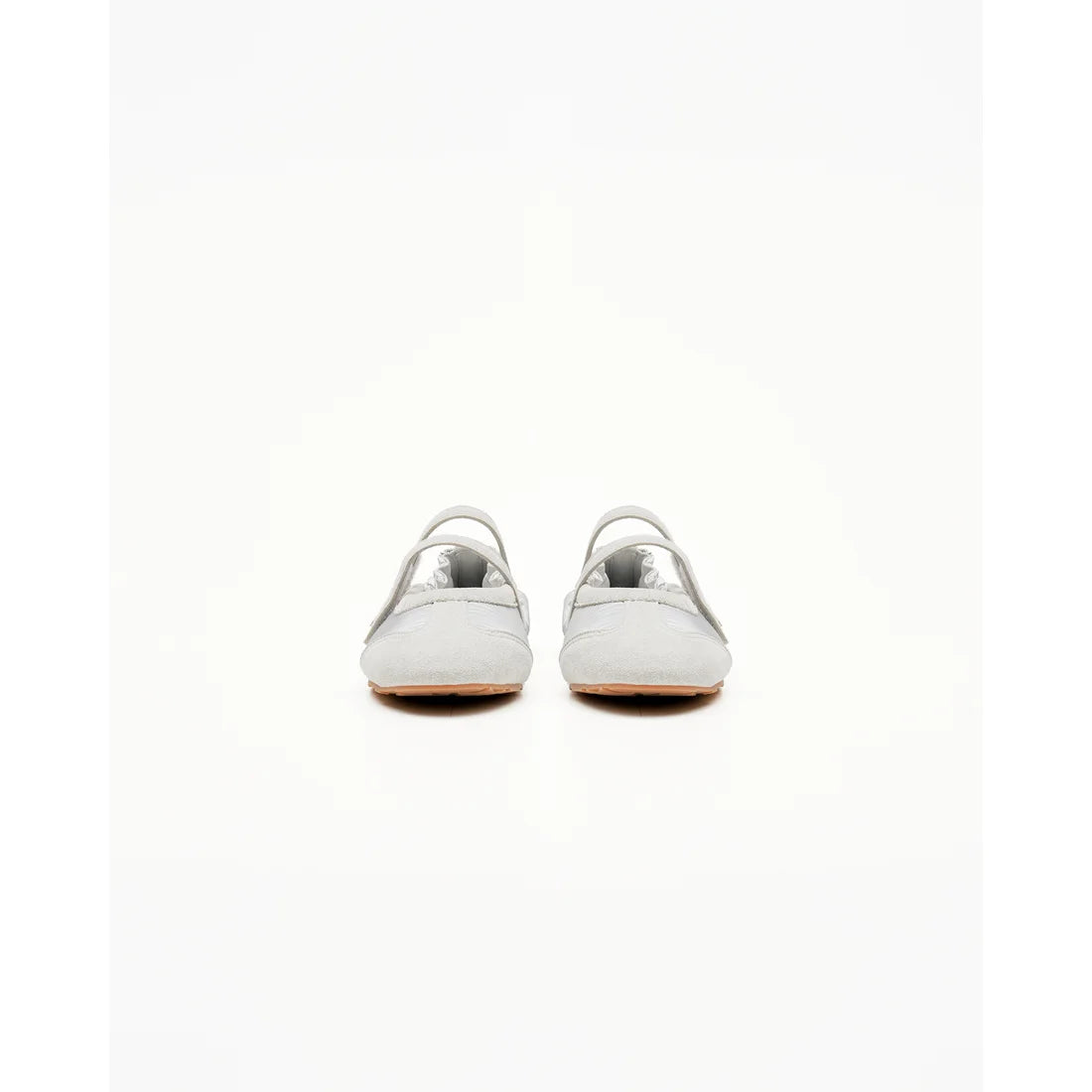 【新品預訂】日本製Emma Francis 彈性褶邊瑪麗珍芭蕾舞鞋(銀色天鵝絨皮革)(09k-NY 162)