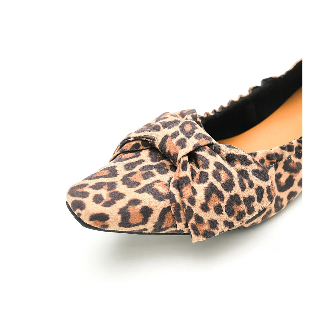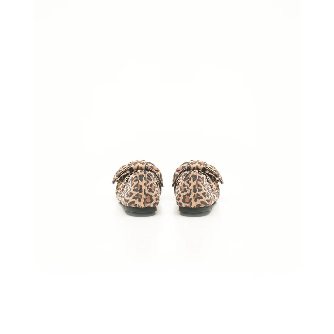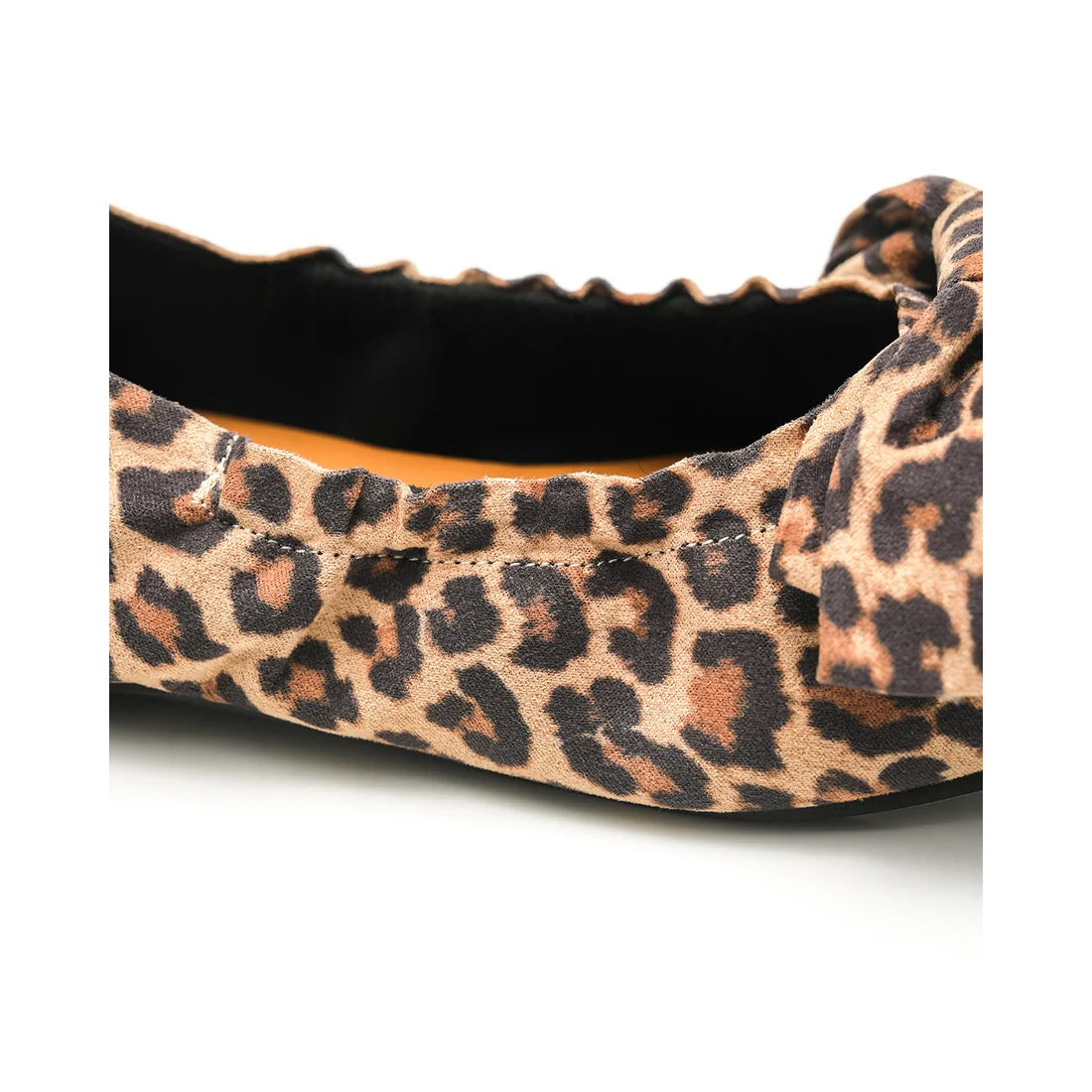 【新品預訂】日本製Emma Francis 天鵝絨大蝴蝶結褶皺平底鞋(豹紋)( 08g S325) Leopard
