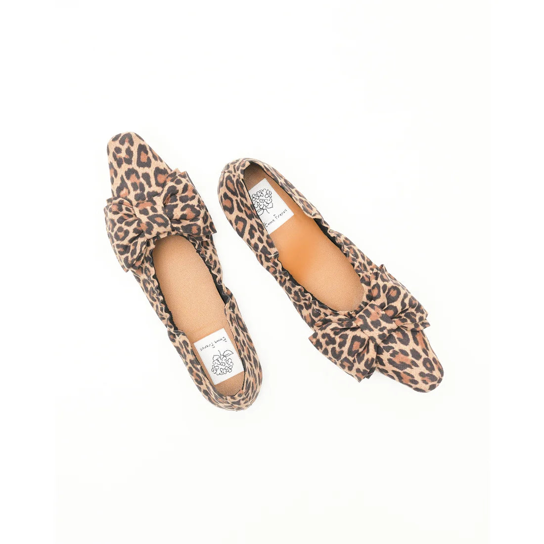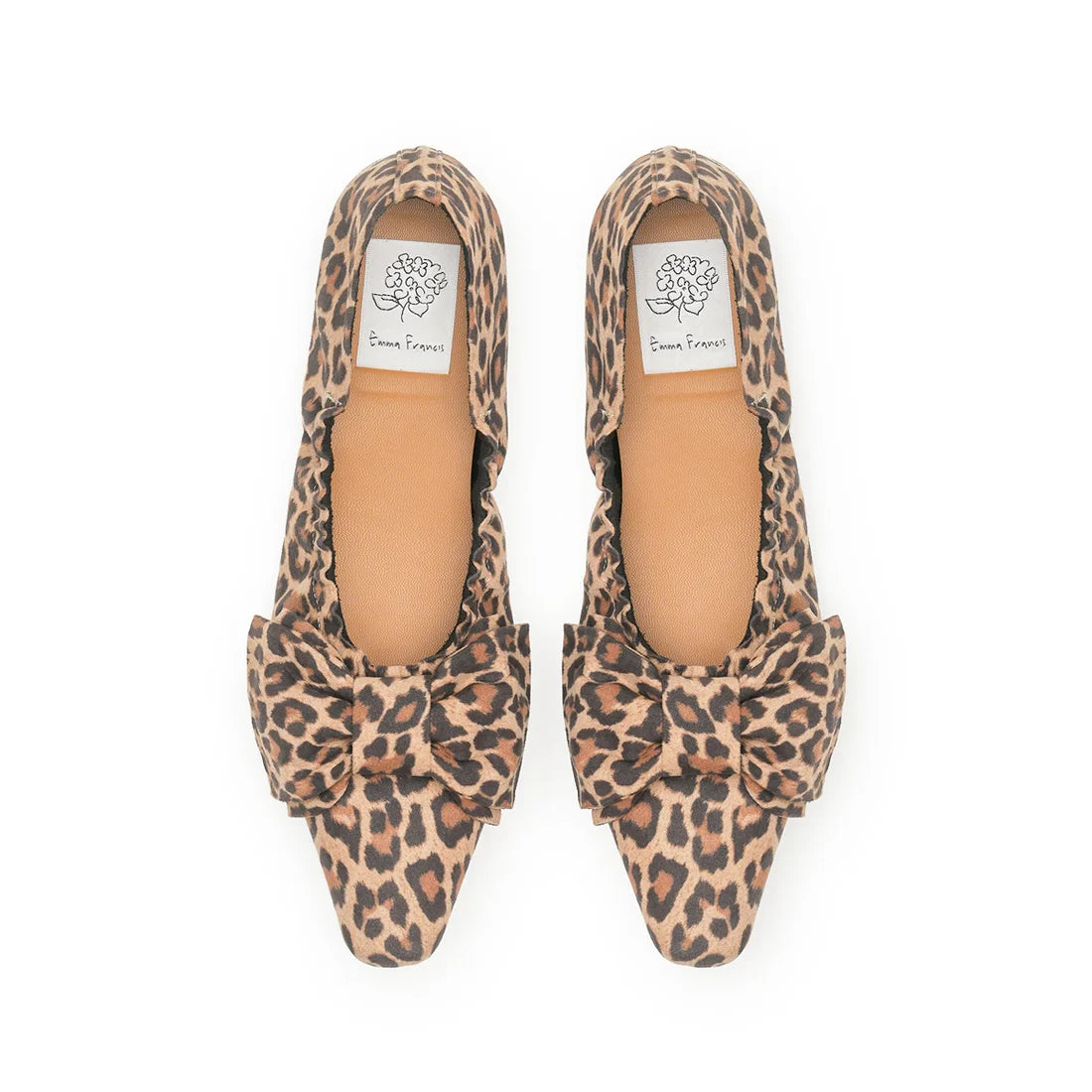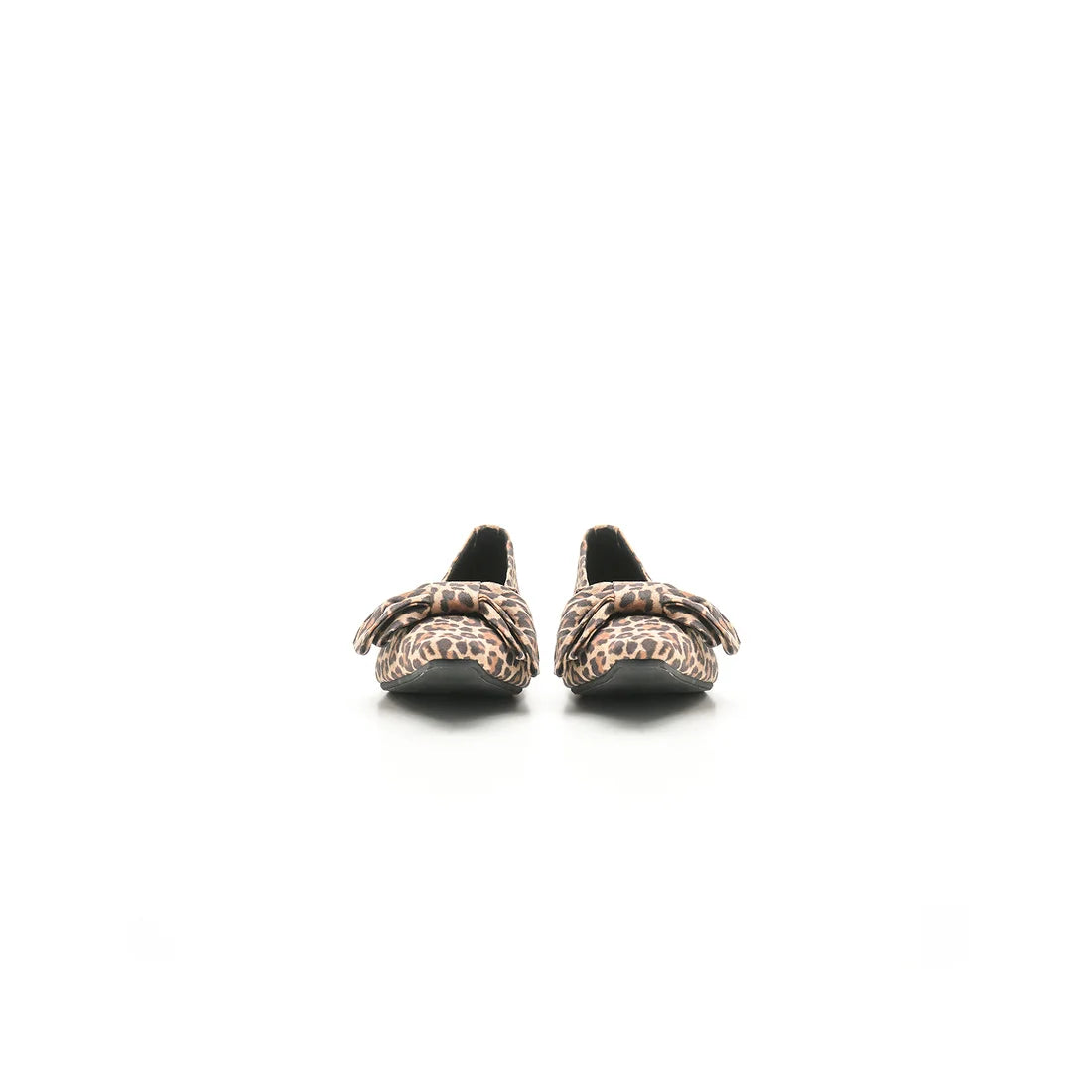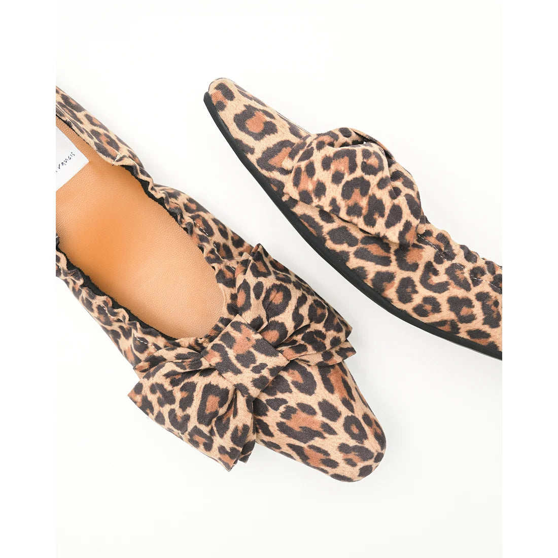 【新品預訂】日本製Emma Francis 天鵝絨大蝴蝶結褶皺平底鞋(豹紋)( 08g S325) Leopard