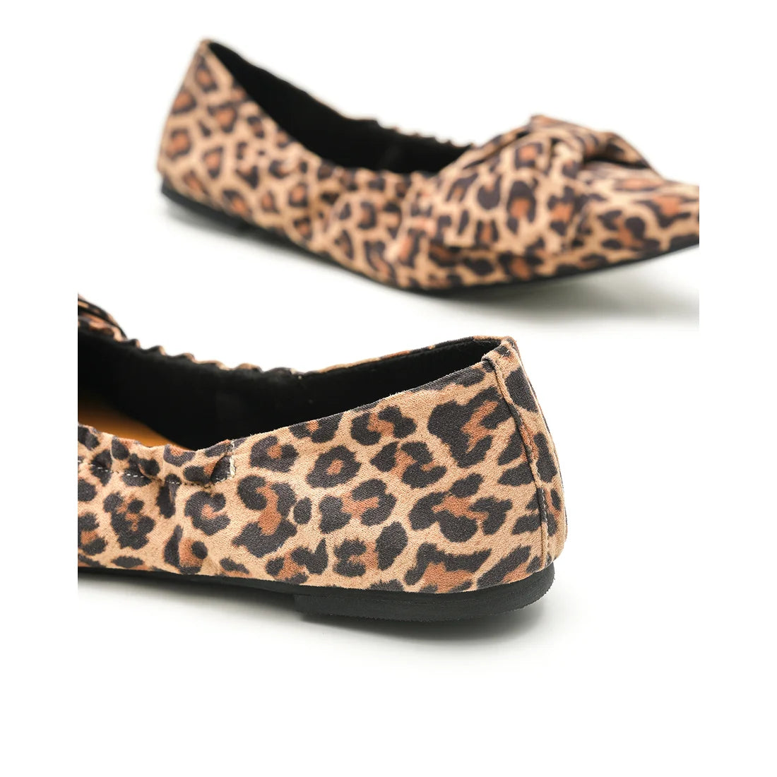 日本製Emma Francis 天鵝絨大蝴蝶結褶皺平底鞋(豹紋)( 08g S325)