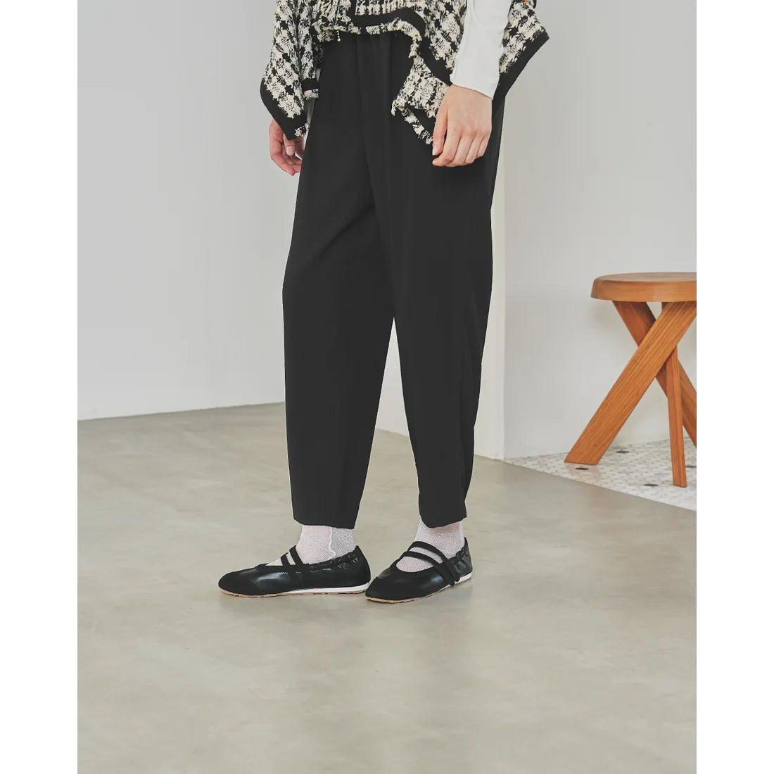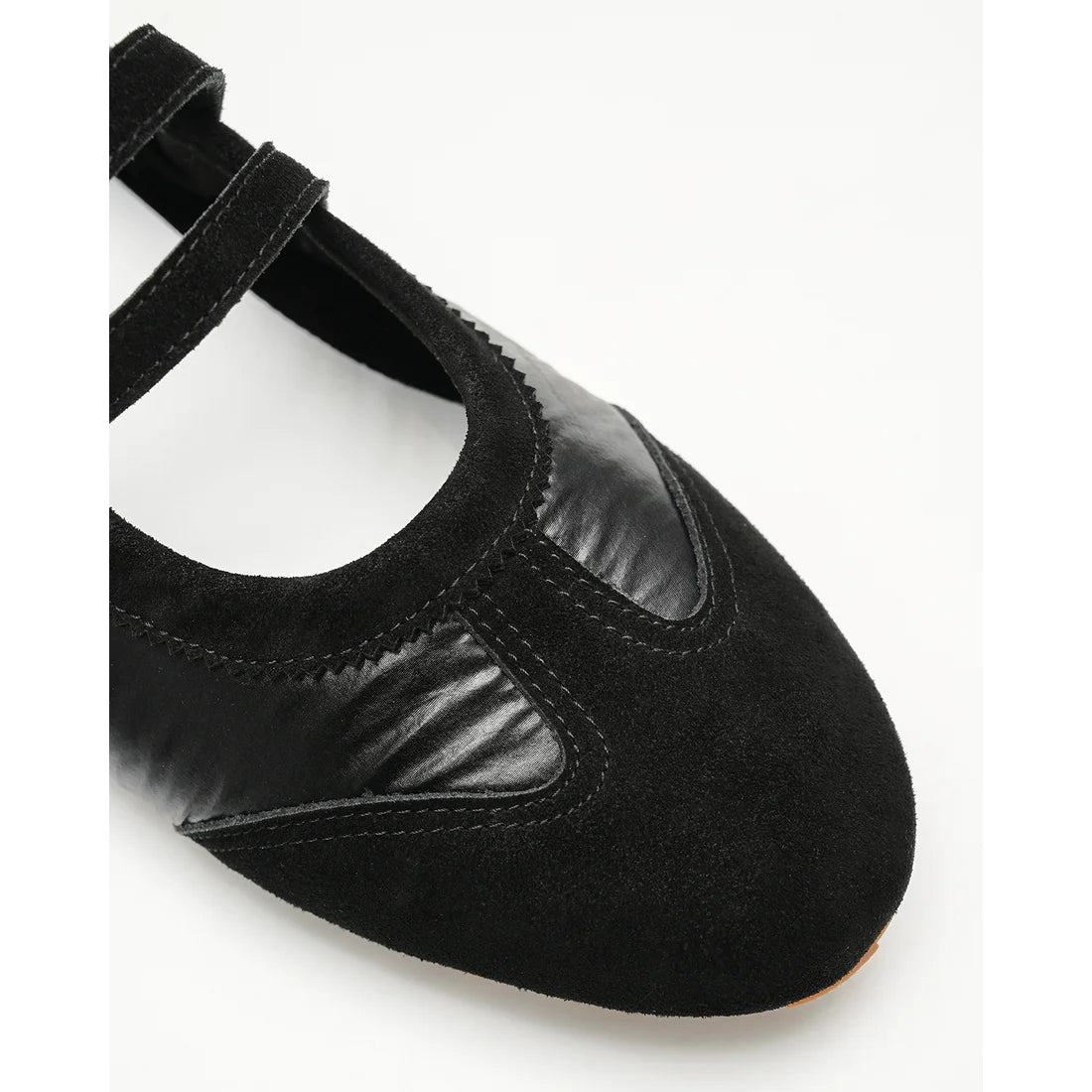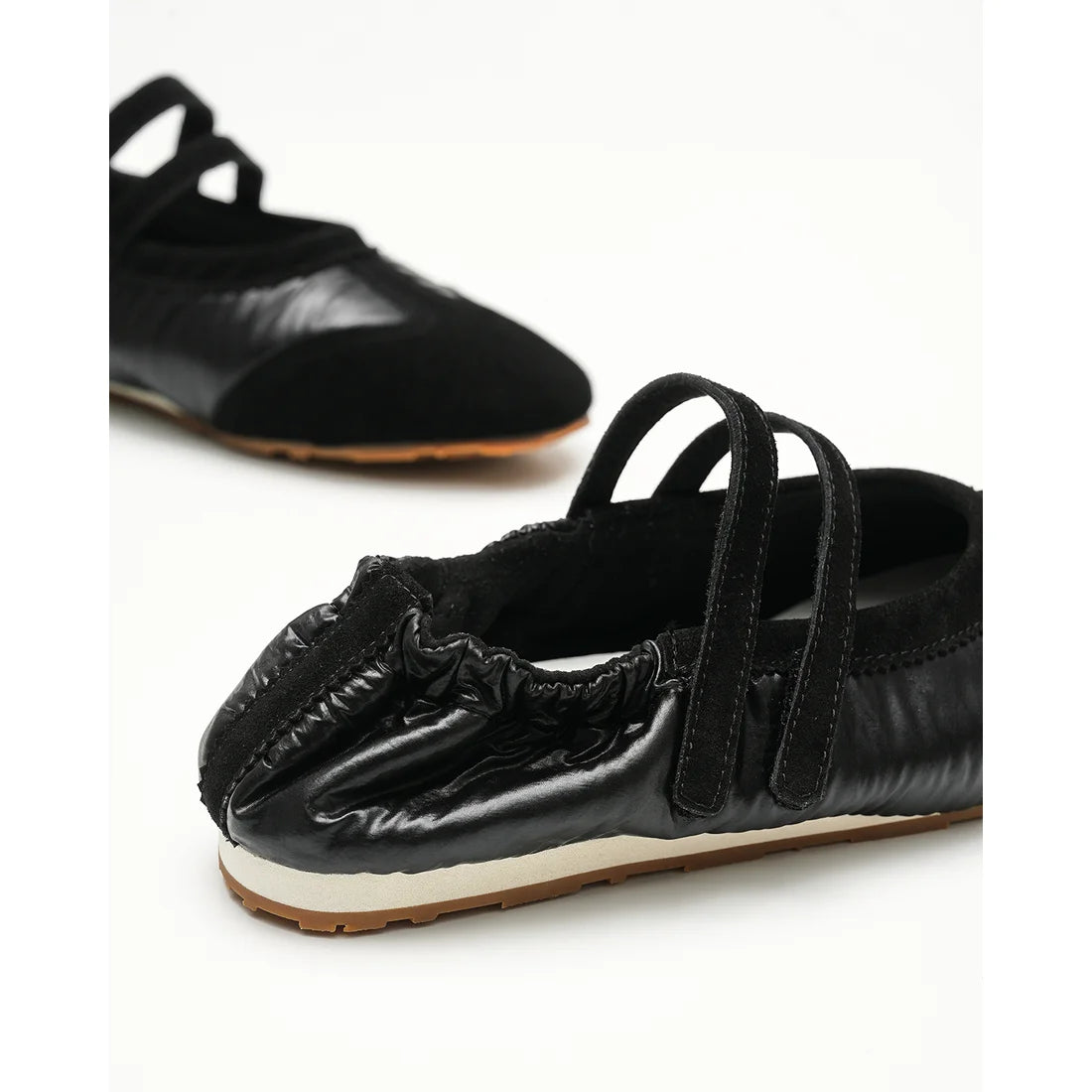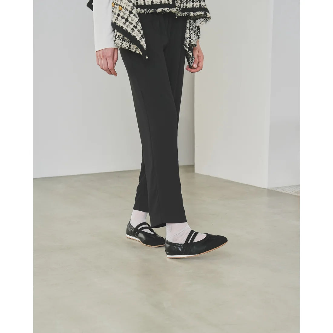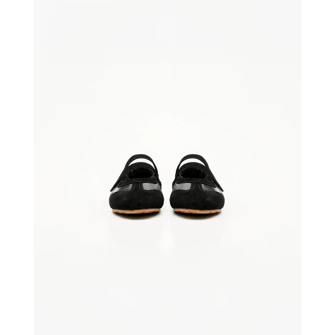 【新品】日本製Emma Francis 彈性褶邊瑪麗珍芭蕾舞鞋(黑色天鵝絨皮革)(09k-NY 101)