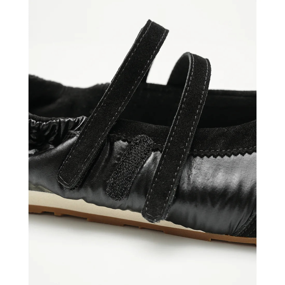 【新品預訂】日本製Emma Francis 彈性褶邊瑪麗珍芭蕾舞鞋(黑色天鵝絨皮革)(09k-NY 101)