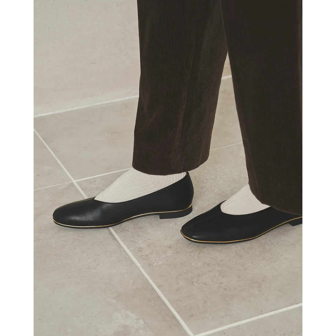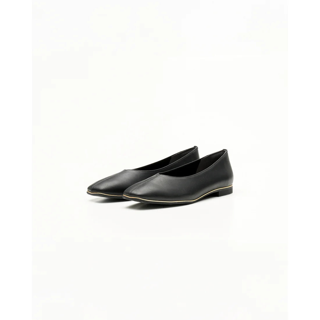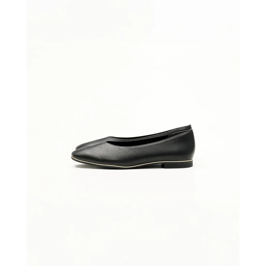 【新品預訂】日本製Emma Francis V形中心接縫金線平底鞋(黑色光滑)(03aa-P 101) BLK