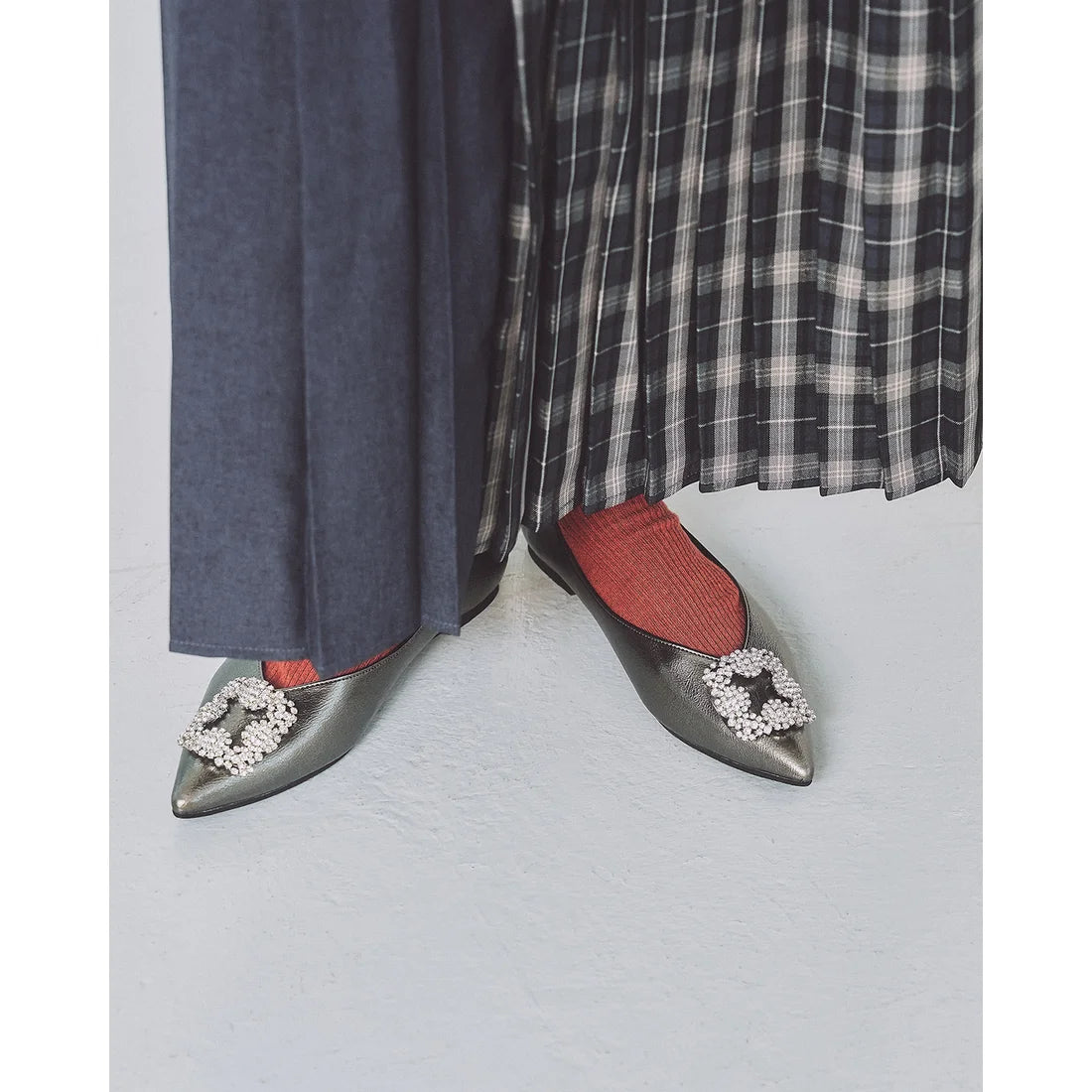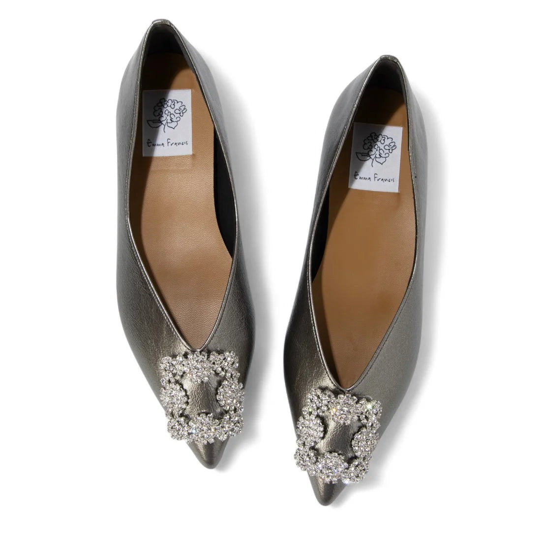【新品預訂】日本製Emma Francis 金屬寶石平底鞋(鋼鐵色)( 07g-M 174)STEEL