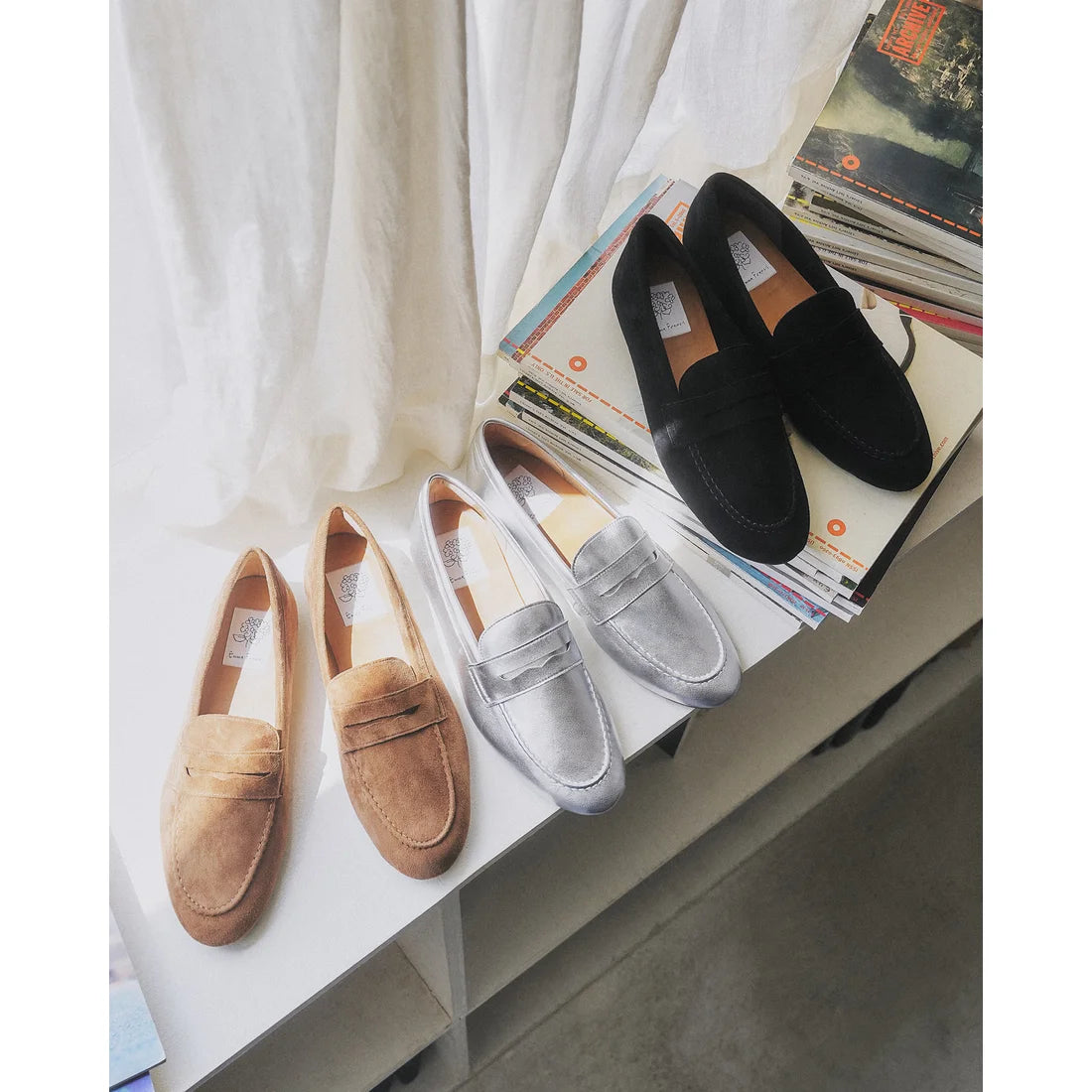 柔軟的羊皮絨面革樂福鞋,