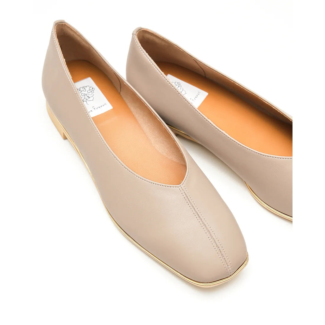 【新品】日本製Emma Francis V形中心接縫金線平底鞋(炭灰色光滑)(03aa-P 177)