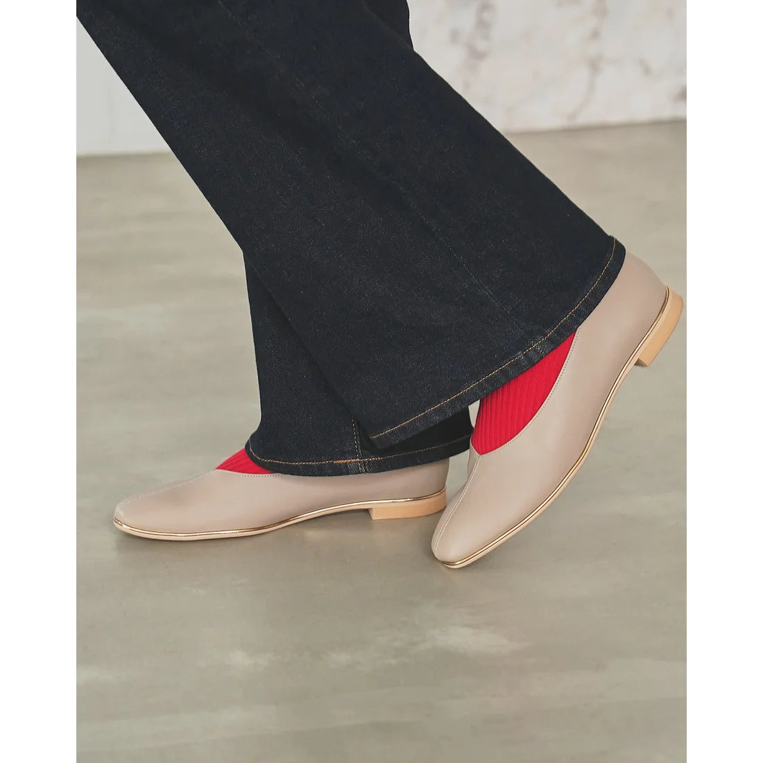【新品預訂】日本製Emma Francis V形中心接縫金線平底鞋(炭灰色光滑)(03aa-P 155) C/GRY