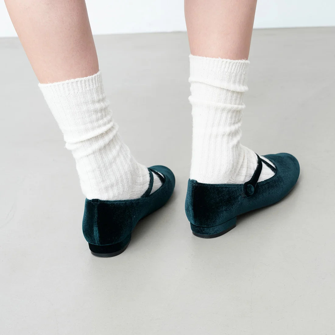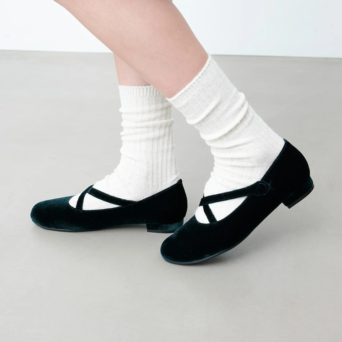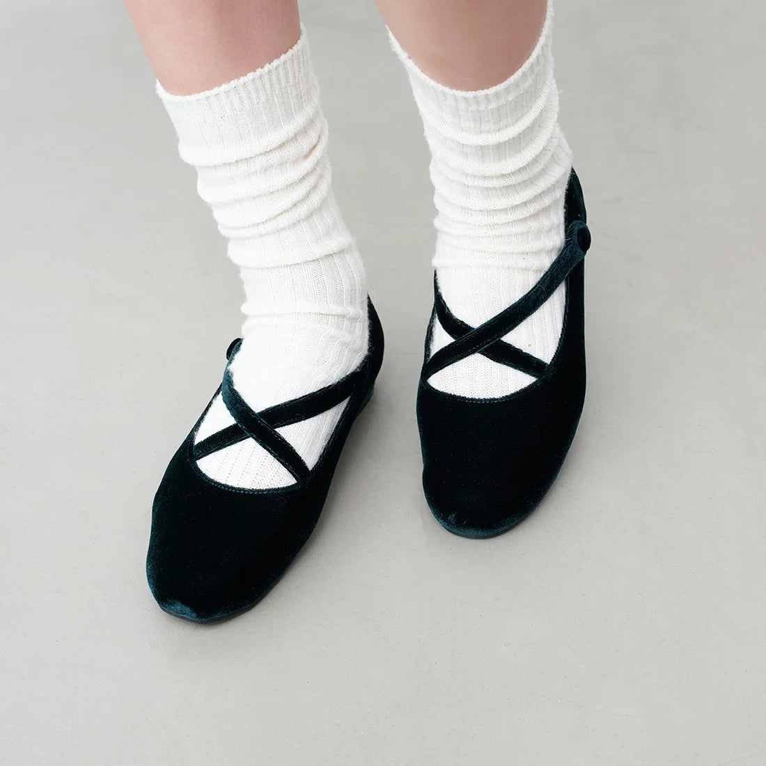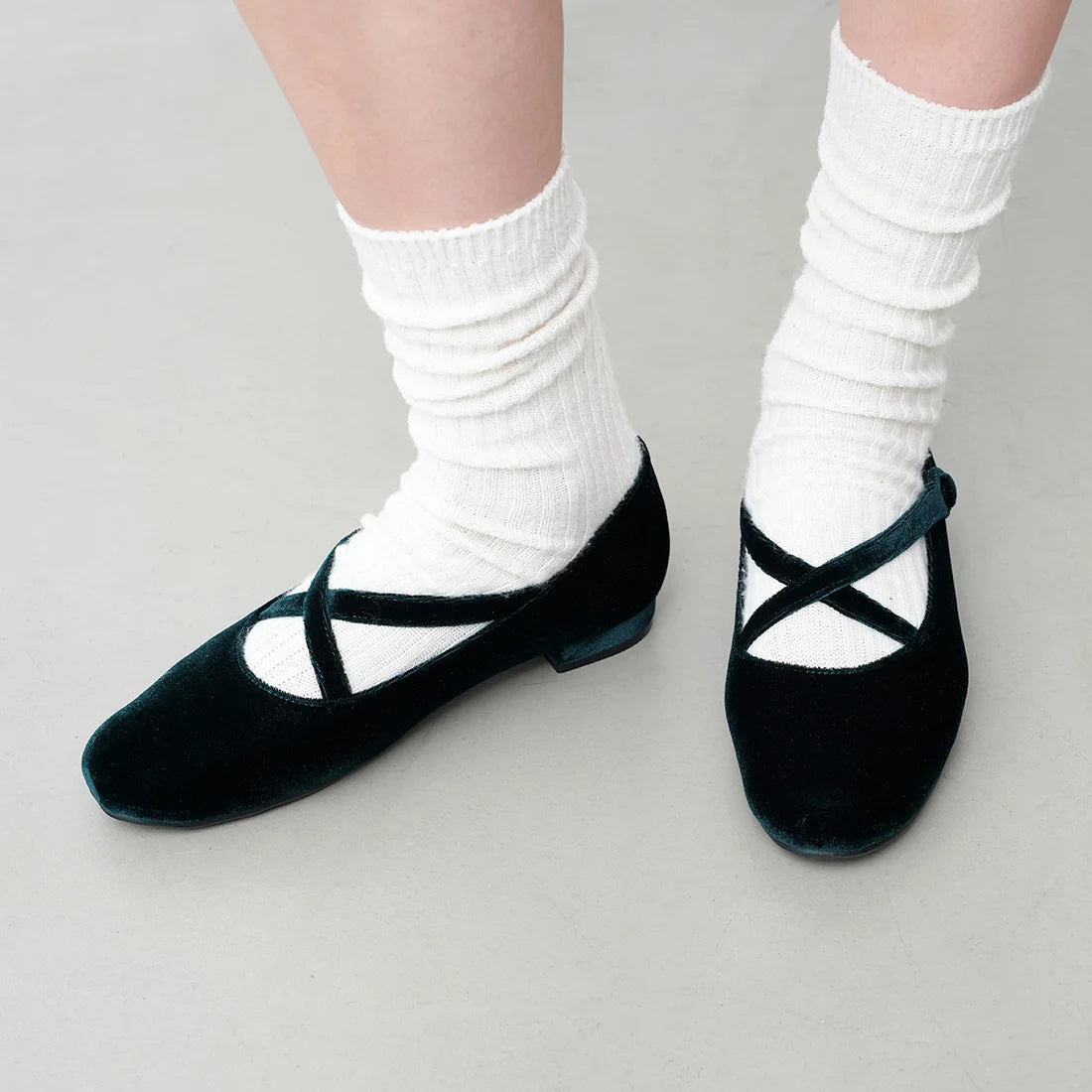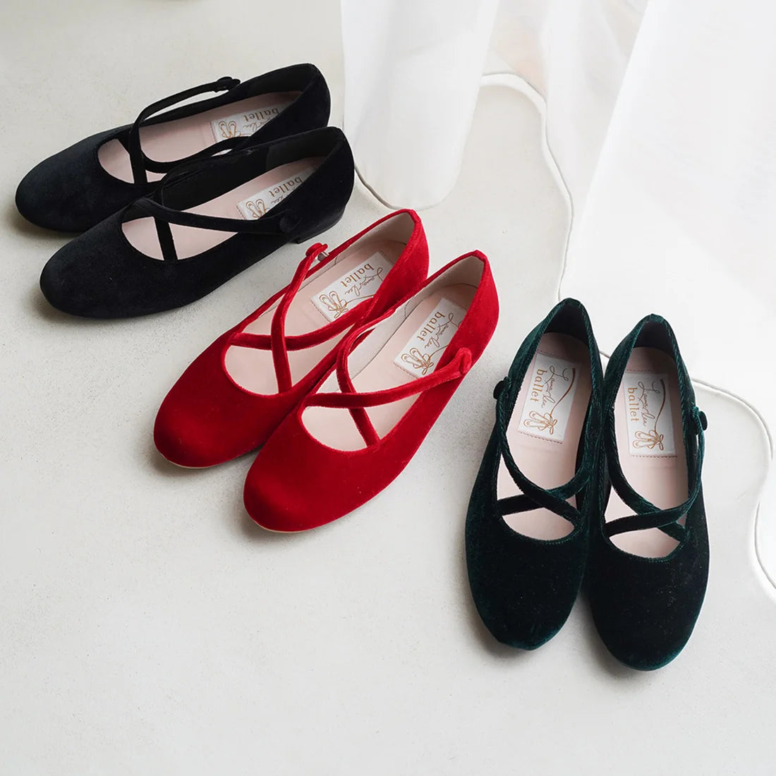 【新品預訂】日本製Launa lea 深綠色絲絨材質交叉帶芭蕾鞋 (B1614A) (D Green Z)