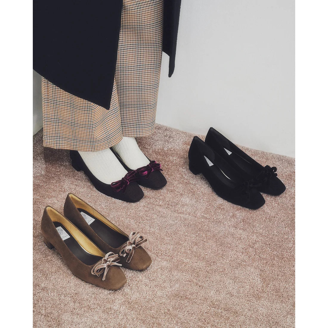 【新品】日本製Emma Francis 蝴蝶結3cm方頭高踭鞋(葡萄酒 絨面革)(3004a-S 138) Wine