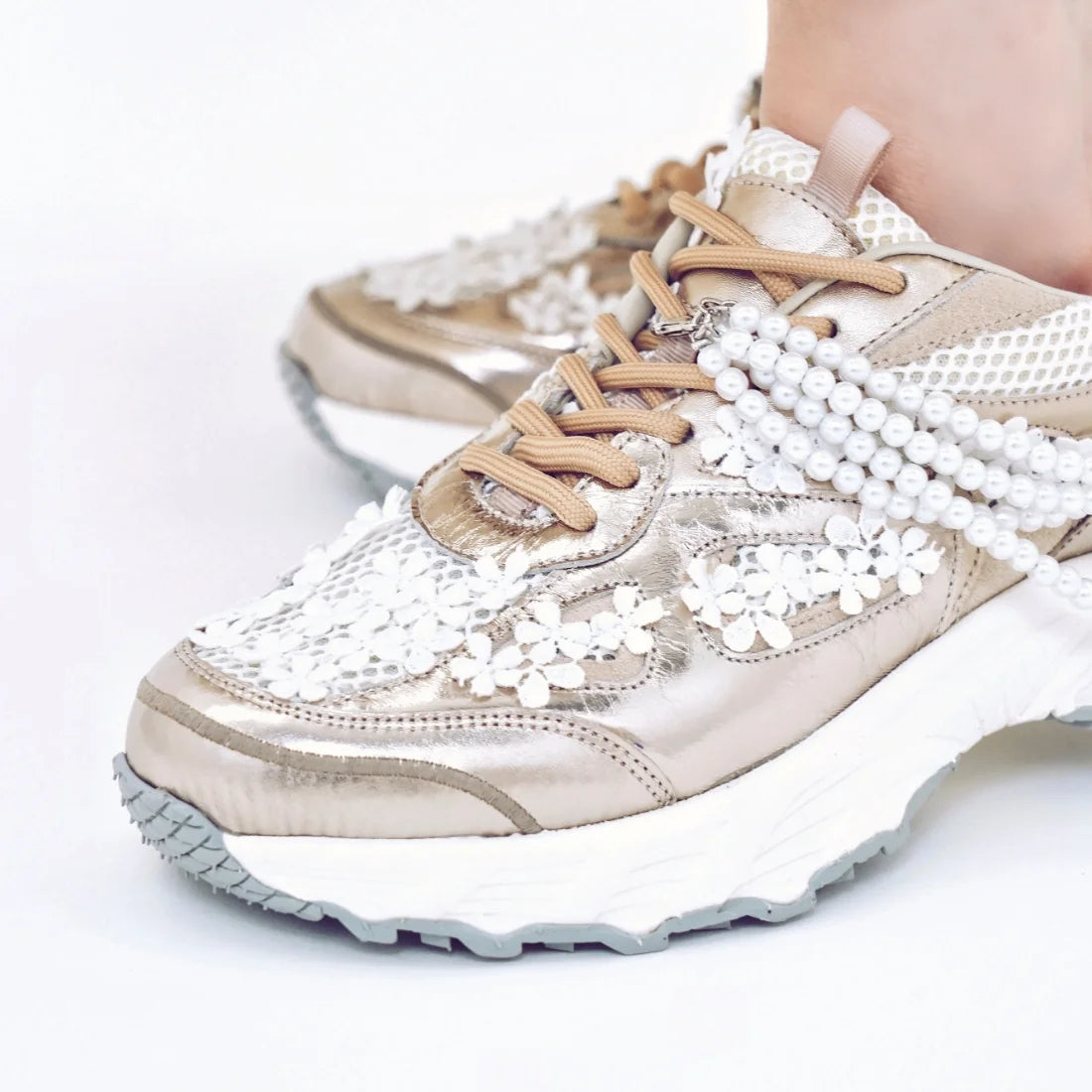 日本潮牌Lucida五周年限定版真皮Nihal LD-166 PKG 粉色可拆珍珠花朵運動鞋