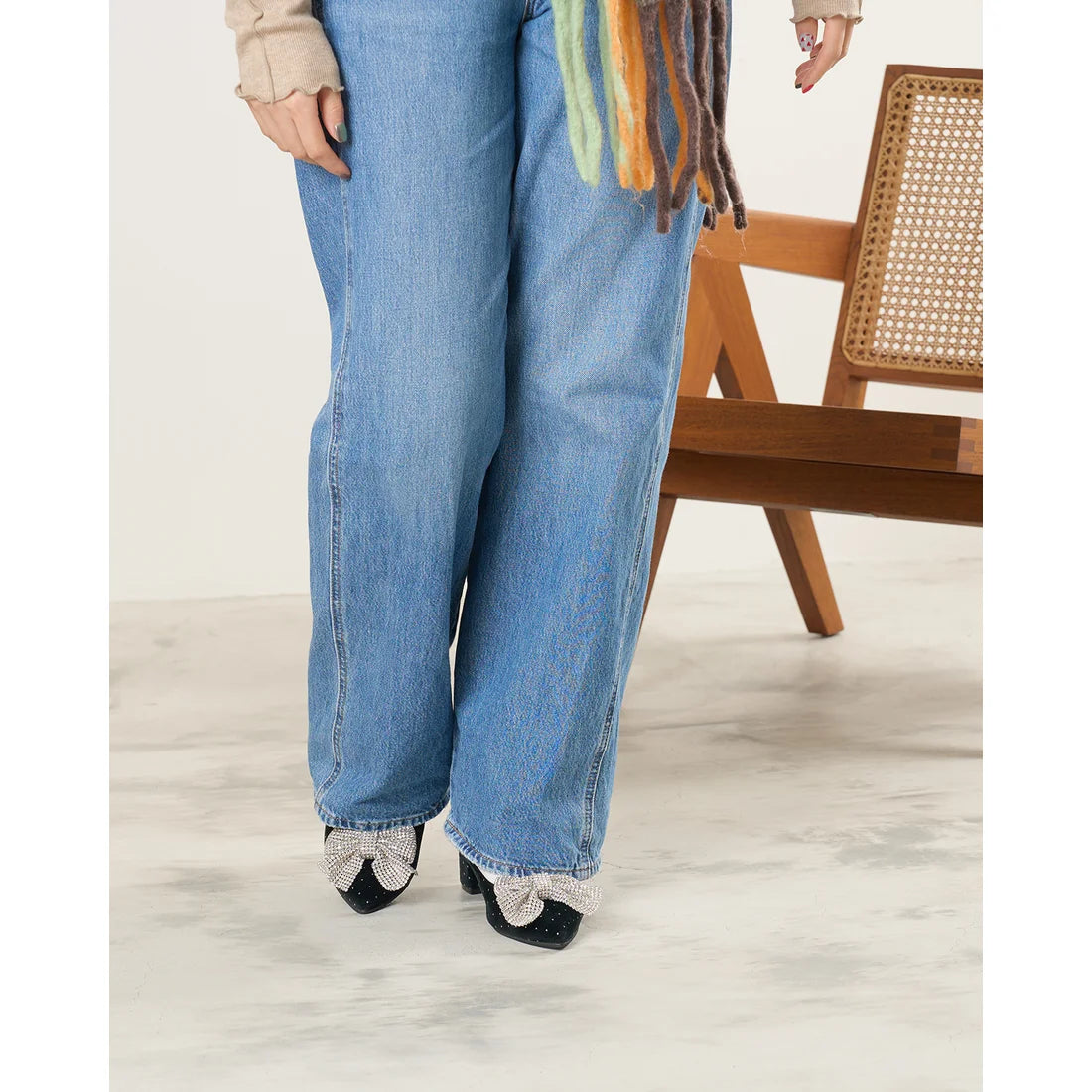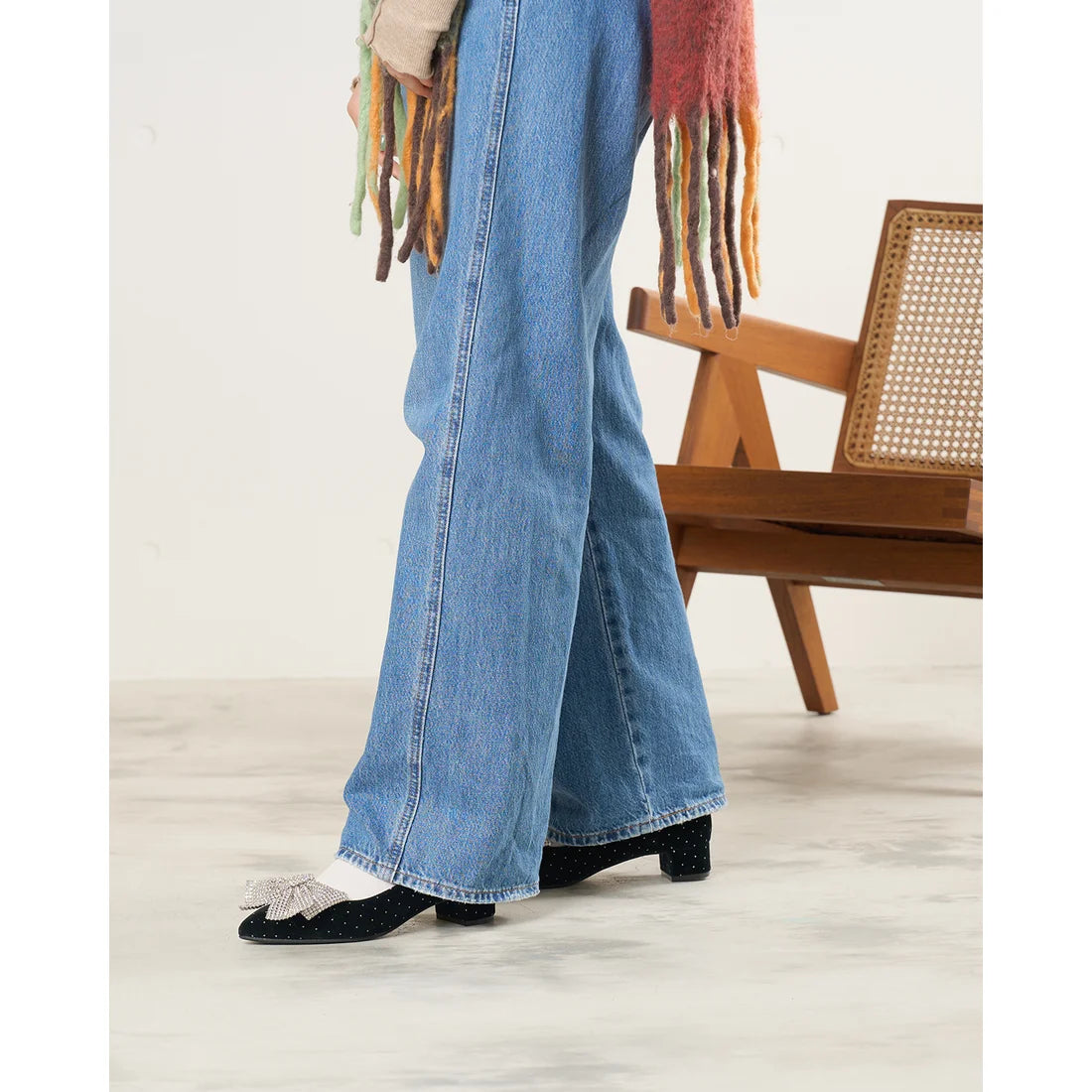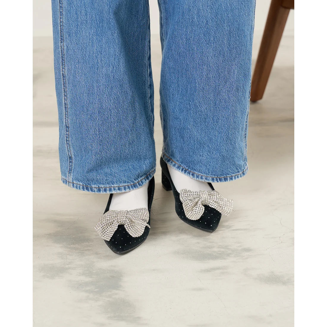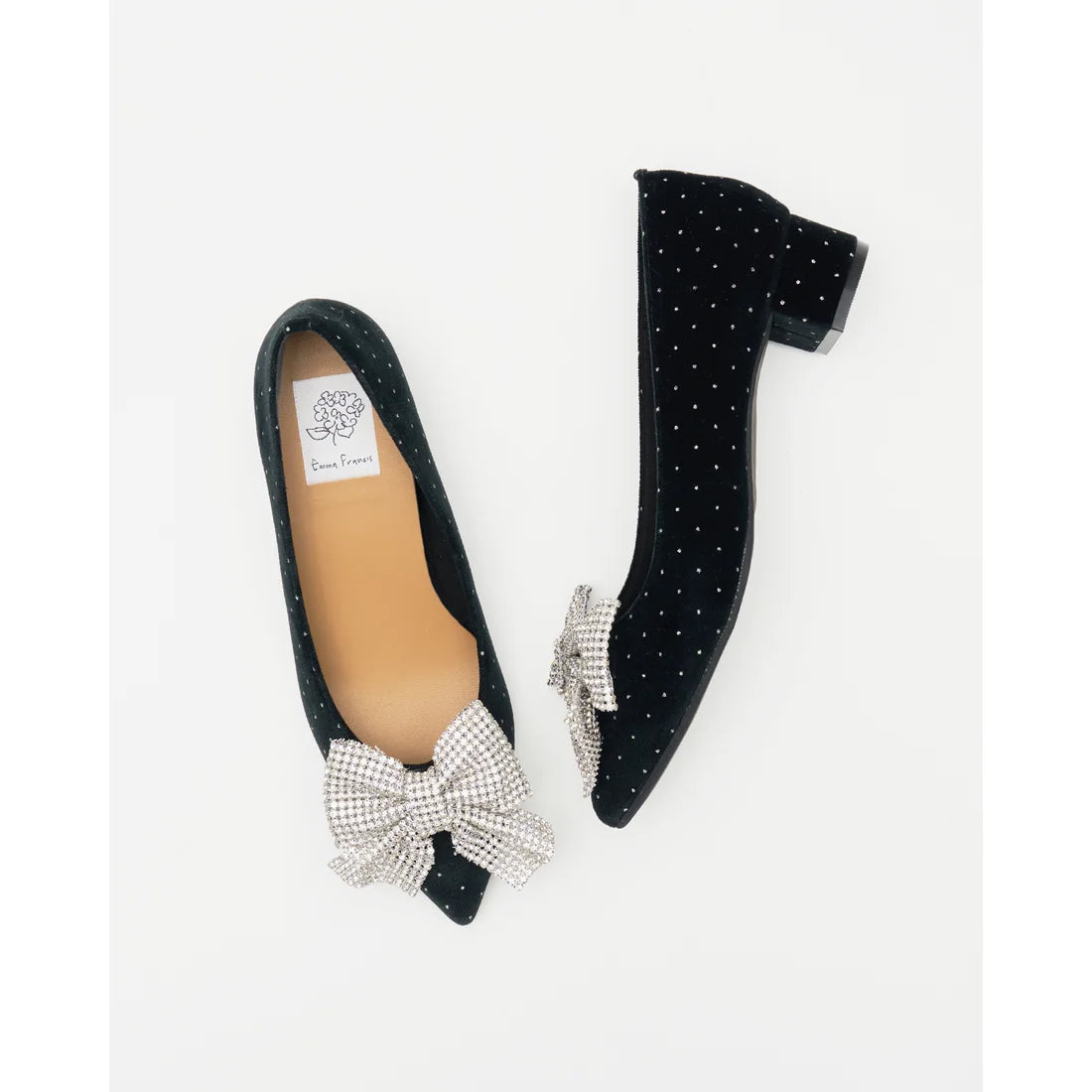 日本製 Emma Francis 大蝴蝶結3cm高跟鞋(黑色天鵝絨)(3002e-V 101) BLK