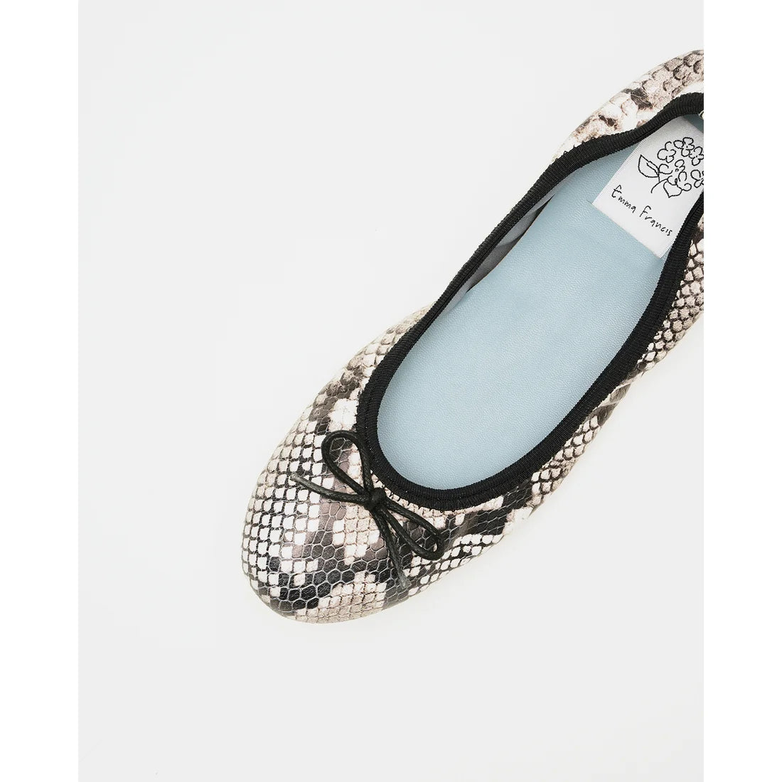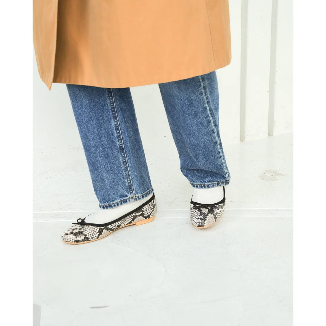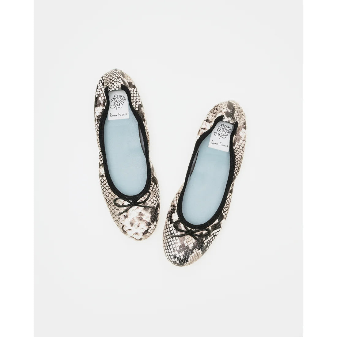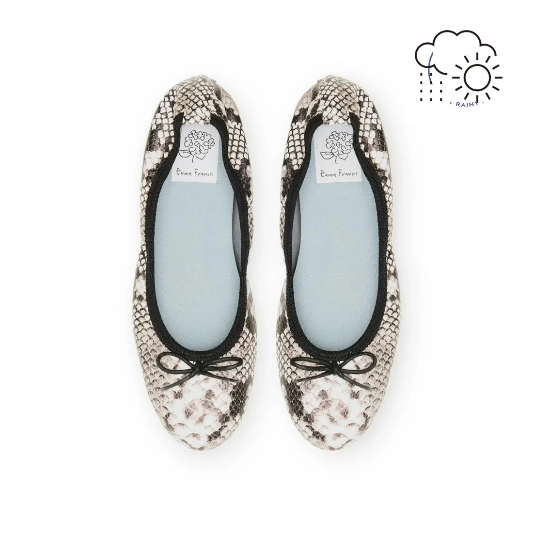 日本製【珍珠色調防水】Emma Francis 真皮 圓頭平底芭蕾舞鞋(02b-L P371)(Python pattern leather smooth)(パイソン柄 レザースムース)