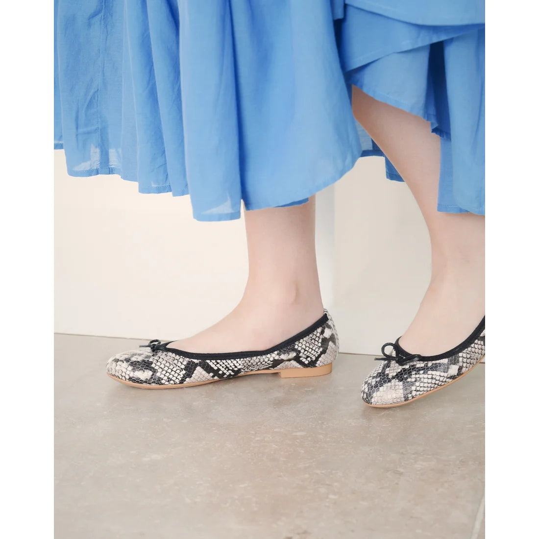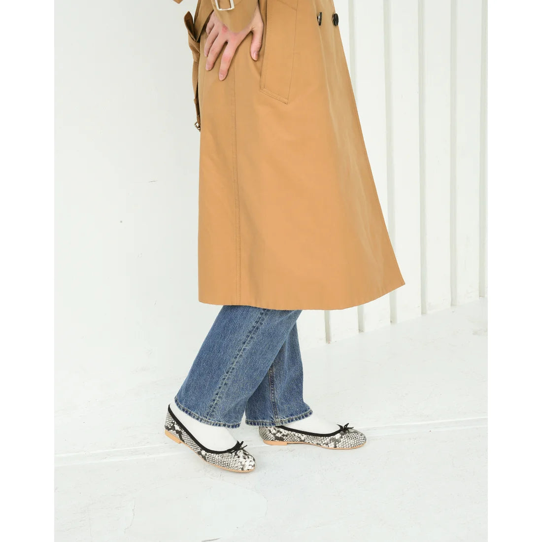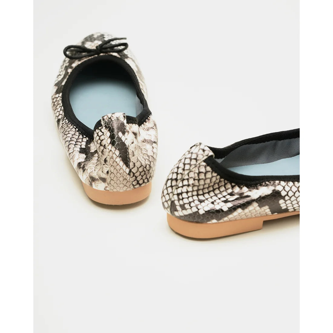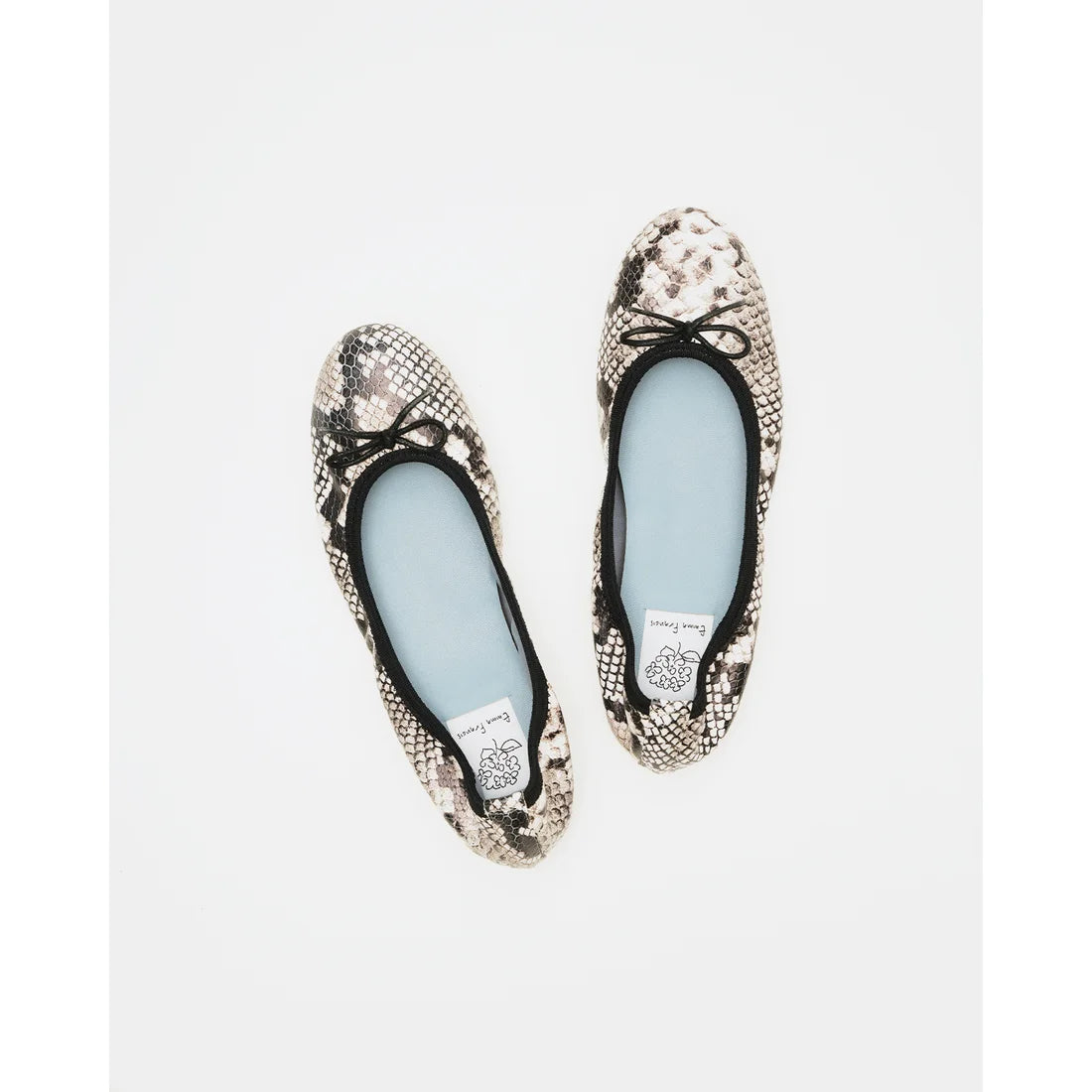 日本製【珍珠色調防水】Emma Francis 真皮 圓頭平底芭蕾舞鞋(02b-L P371)(Python pattern leather smooth)(パイソン柄 レザースムース)