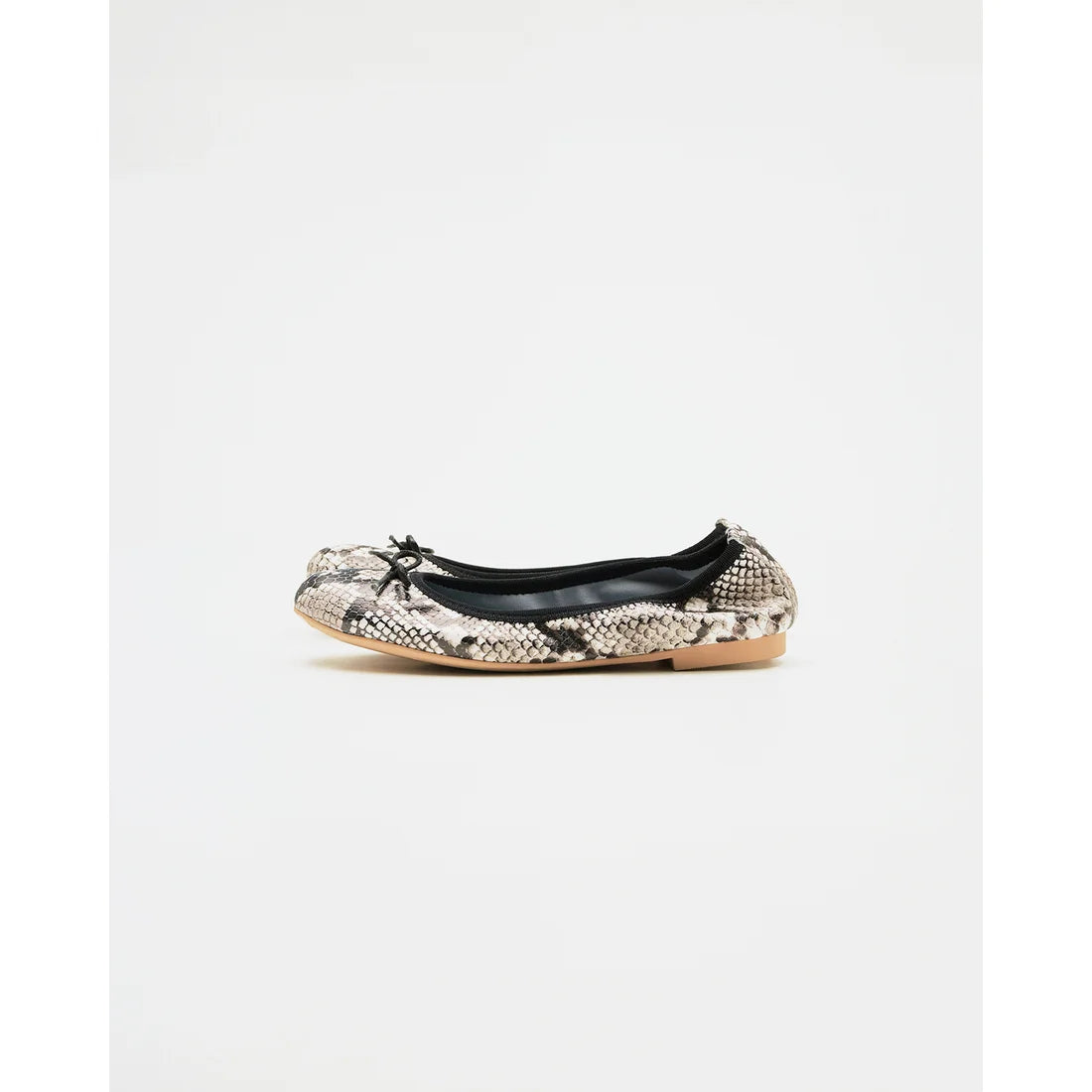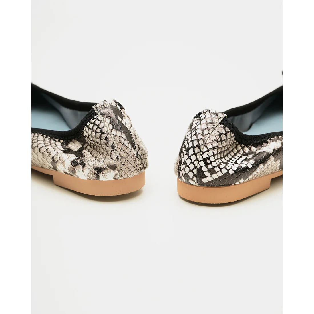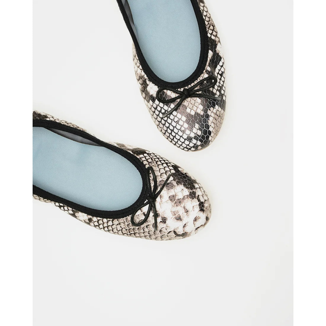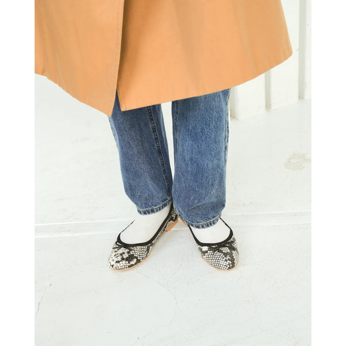 日本製【珍珠色調防水】Emma Francis 真皮 圓頭平底芭蕾舞鞋(02b-L P371)(Python pattern leather smooth)(パイソン柄 レザースムース)