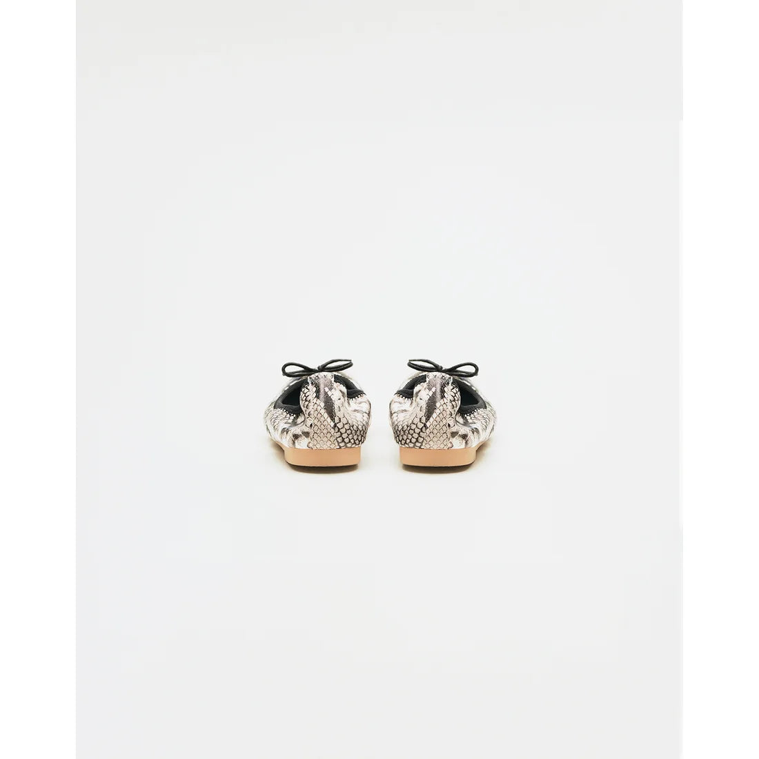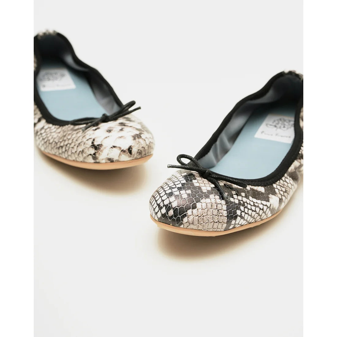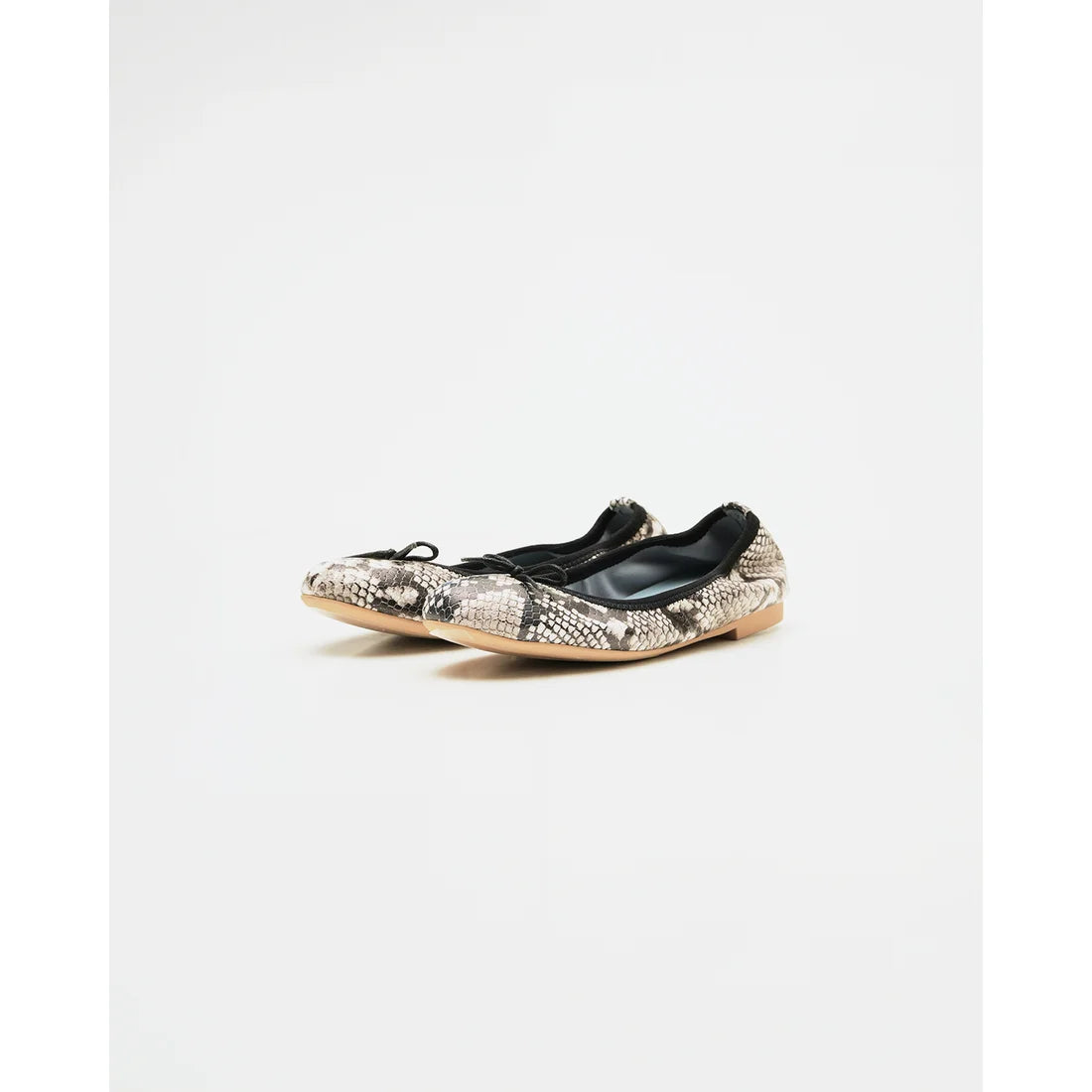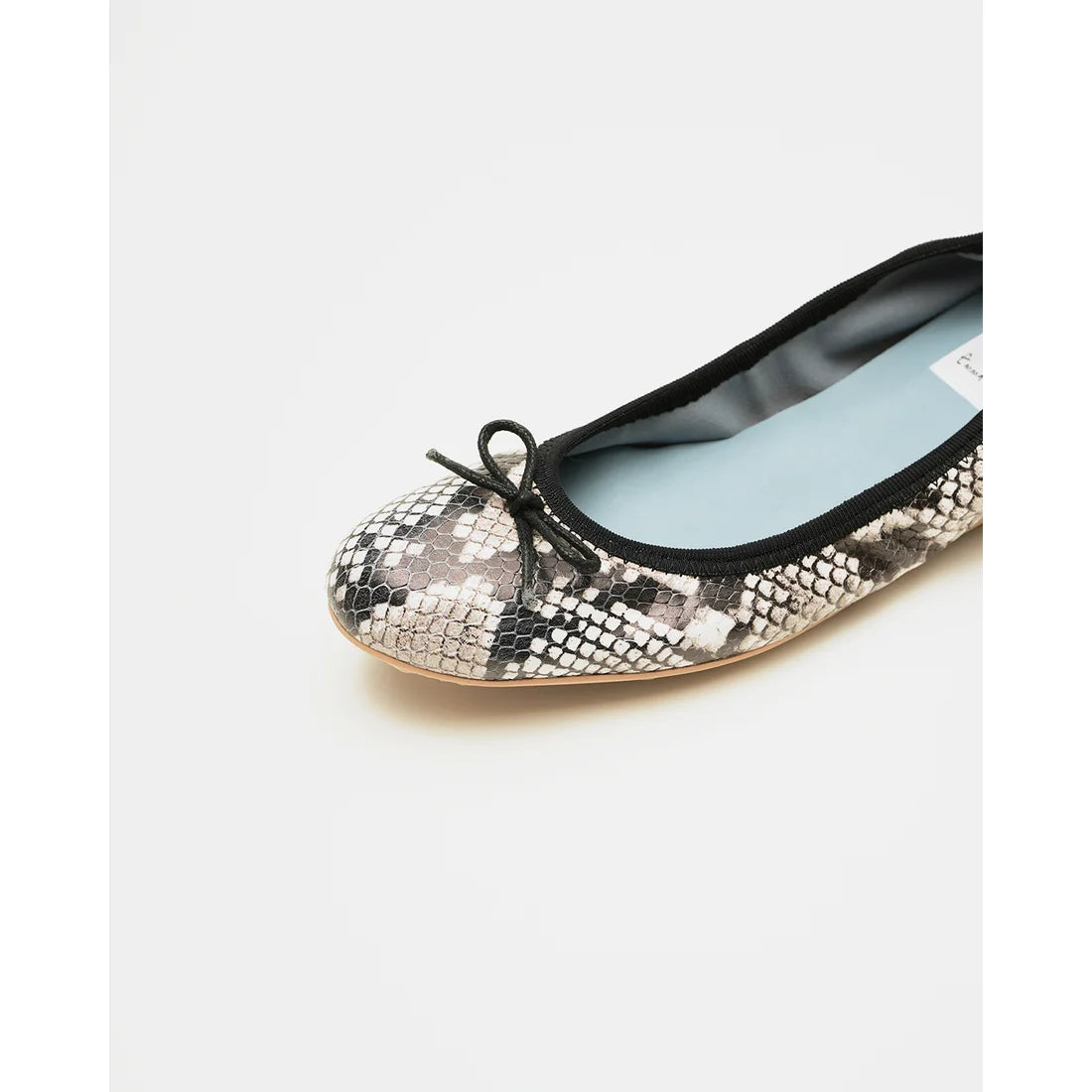 日本製【珍珠色調防水】Emma Francis 真皮 圓頭平底芭蕾舞鞋(02b-L P371)(Python pattern leather smooth)(パイソン柄 レザースムース)