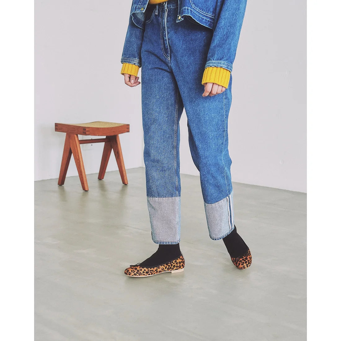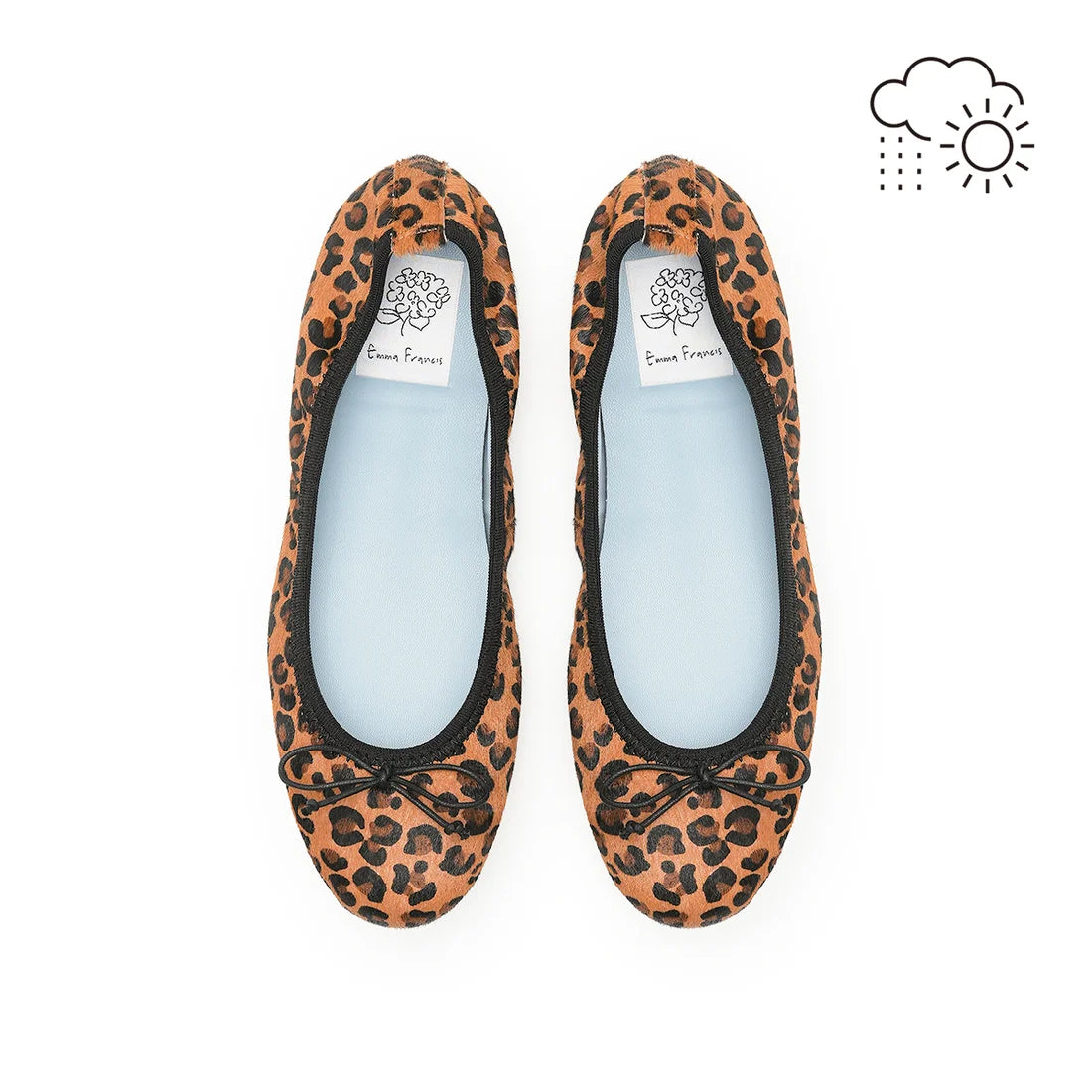 【新品預訂】日本製【珍珠色調防水】Emma Francis 真皮 圓頭平底芭蕾舞鞋(02b-L H328)(Leopard pattern Harako leather)(レオパード柄 ハラコレザー)