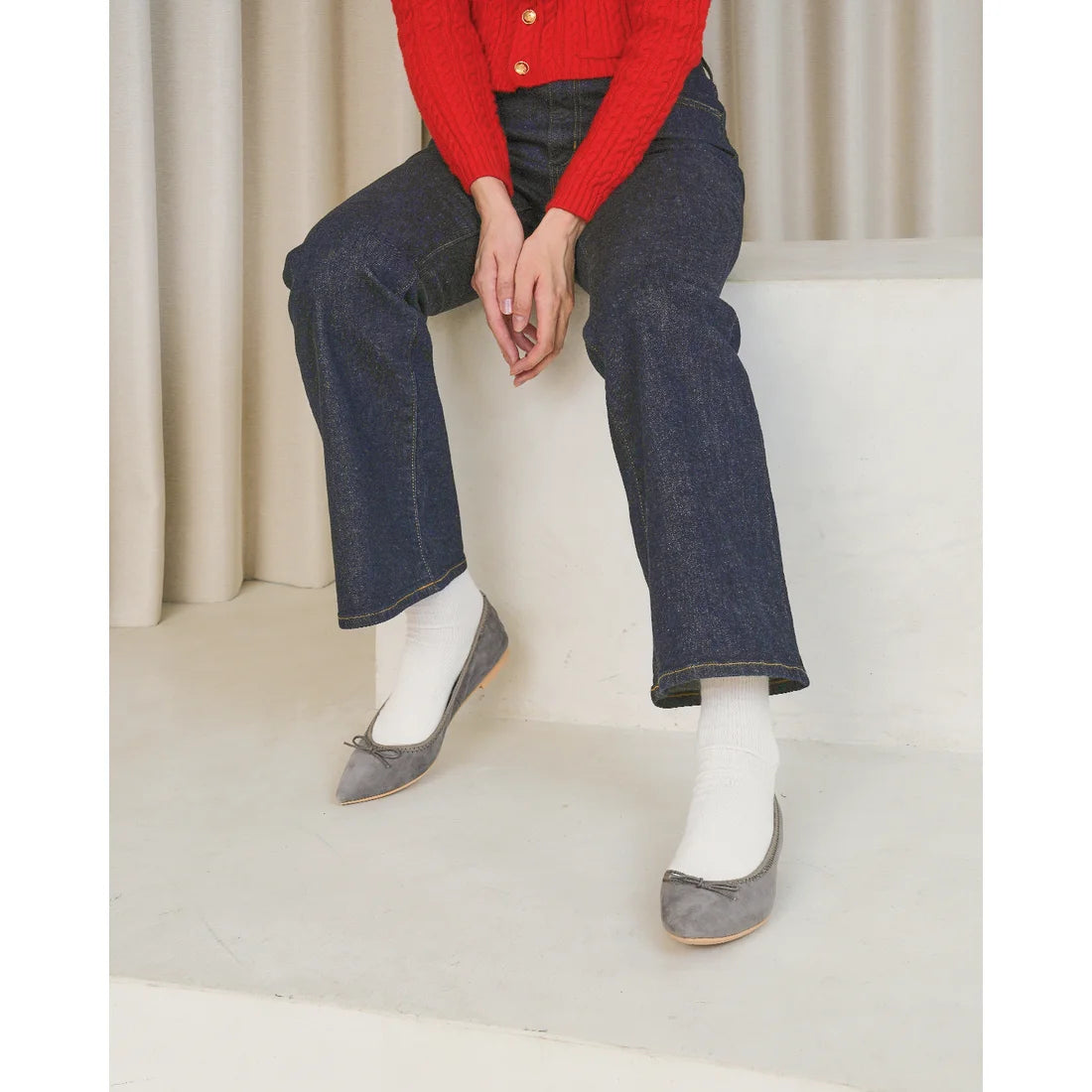 日本製【珍珠色調防水】Emma Francis 真皮 尖頭平底芭蕾舞鞋(01b-L S154)(Dark Grey leather suede) (ダークグレー レザースエード)