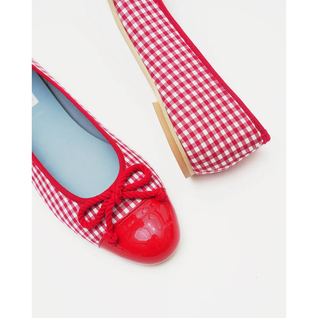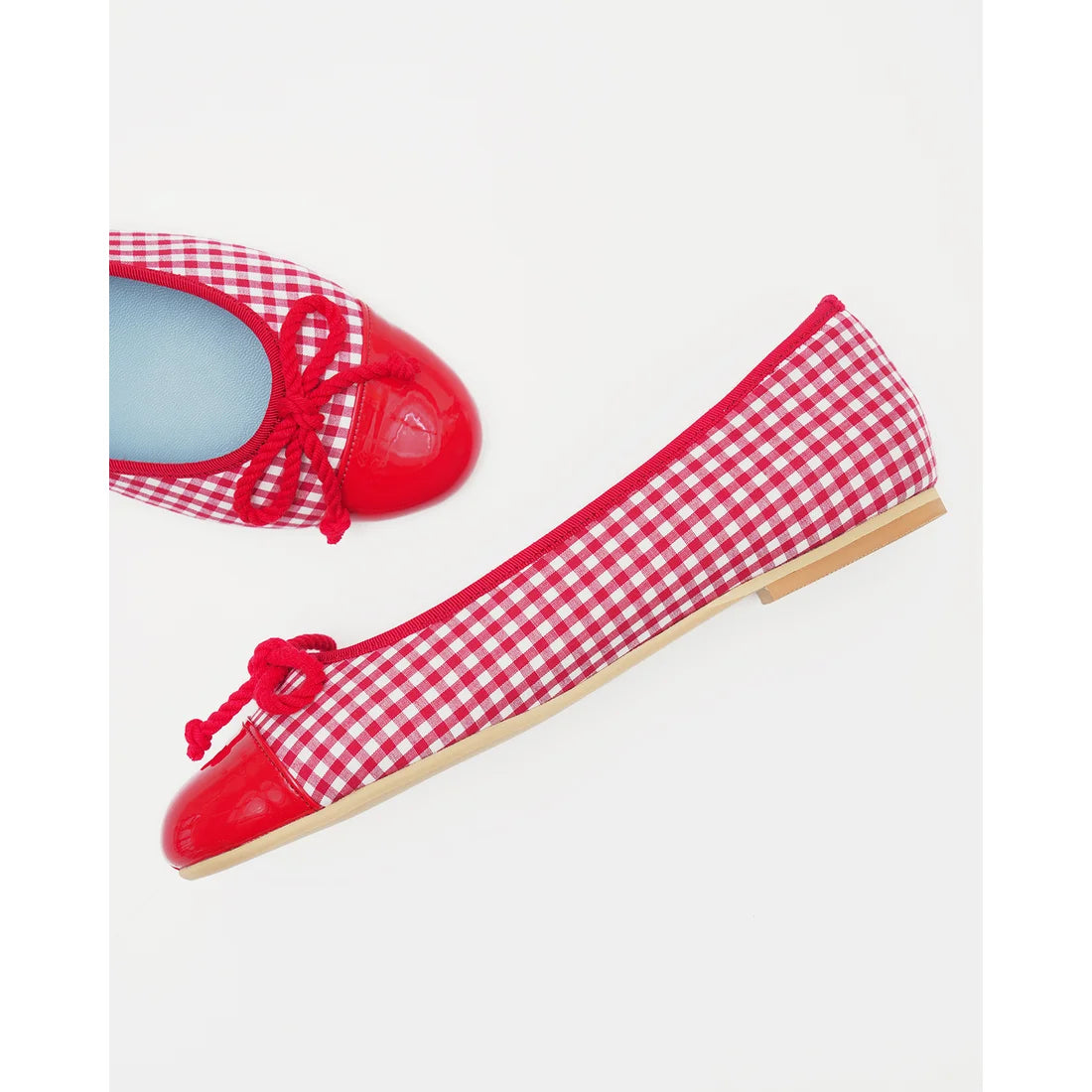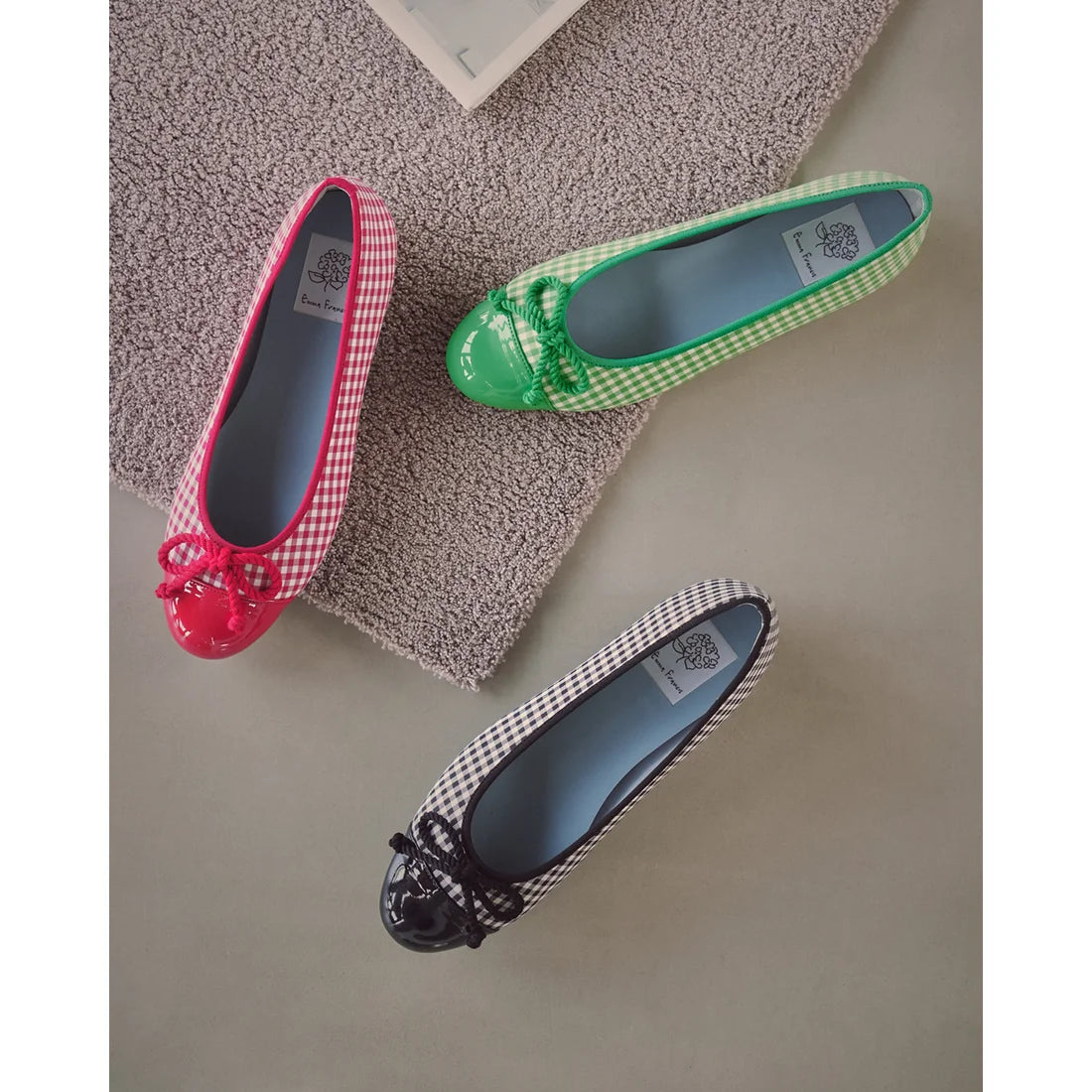 一雙可愛的芭蕾平底鞋,帶有春夏經典的格子圖案。