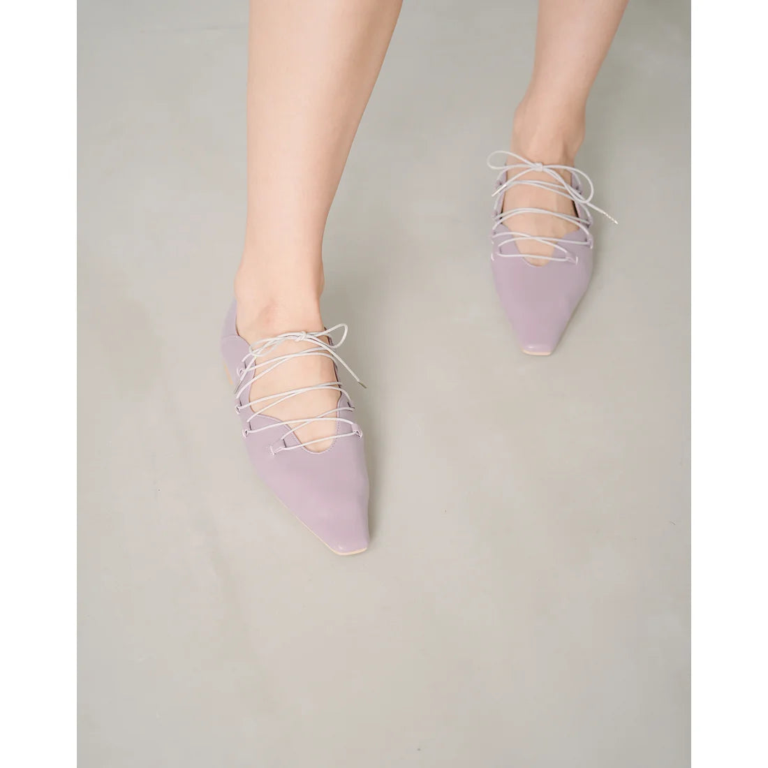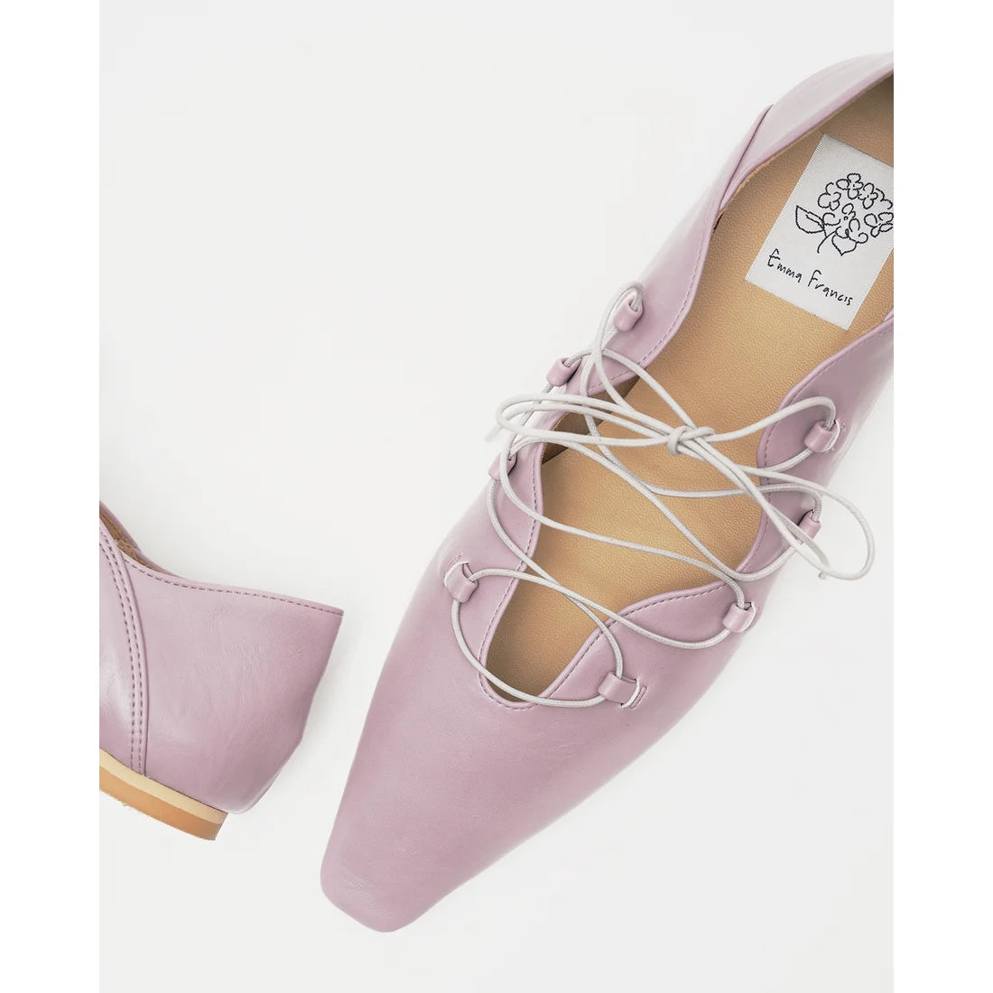 日本製 Emma Francis 花朵圖案繫帶平底鞋 (紫色光面) 8f-P 126 PPL