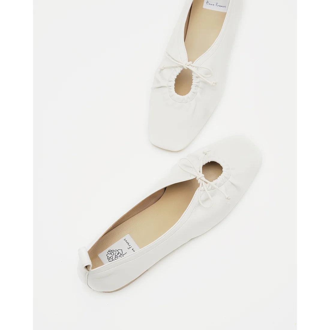 日本製 Emma Francis 褶皺平底高跟鞋 (白色光面) 03u-P 158 WHT