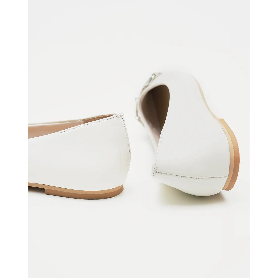 日本製 Emma Francis 金屬搭扣尖頭平底鞋 (白色光面) 07b-P 158 WHT