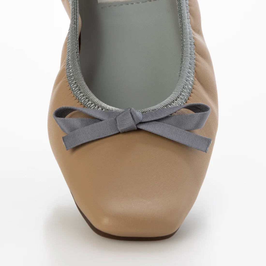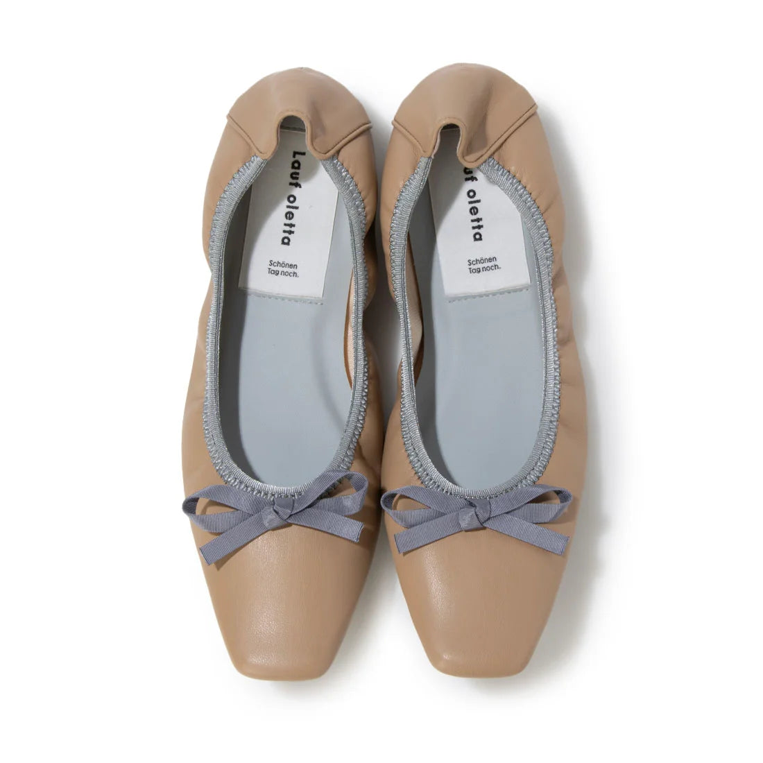 ・以芭蕾舞鞋為基礎的繫帶設計柔軟平底鞋。