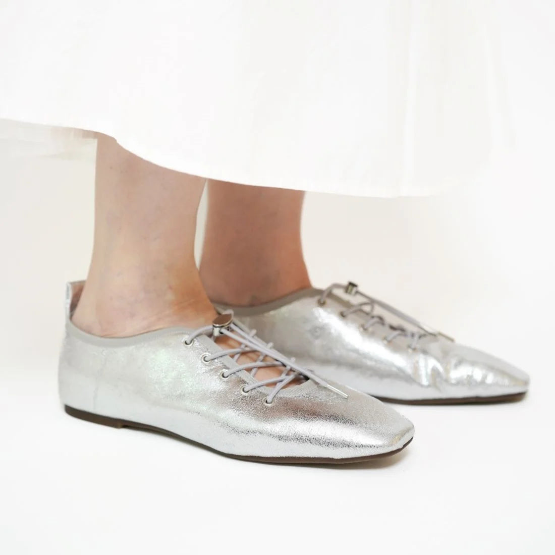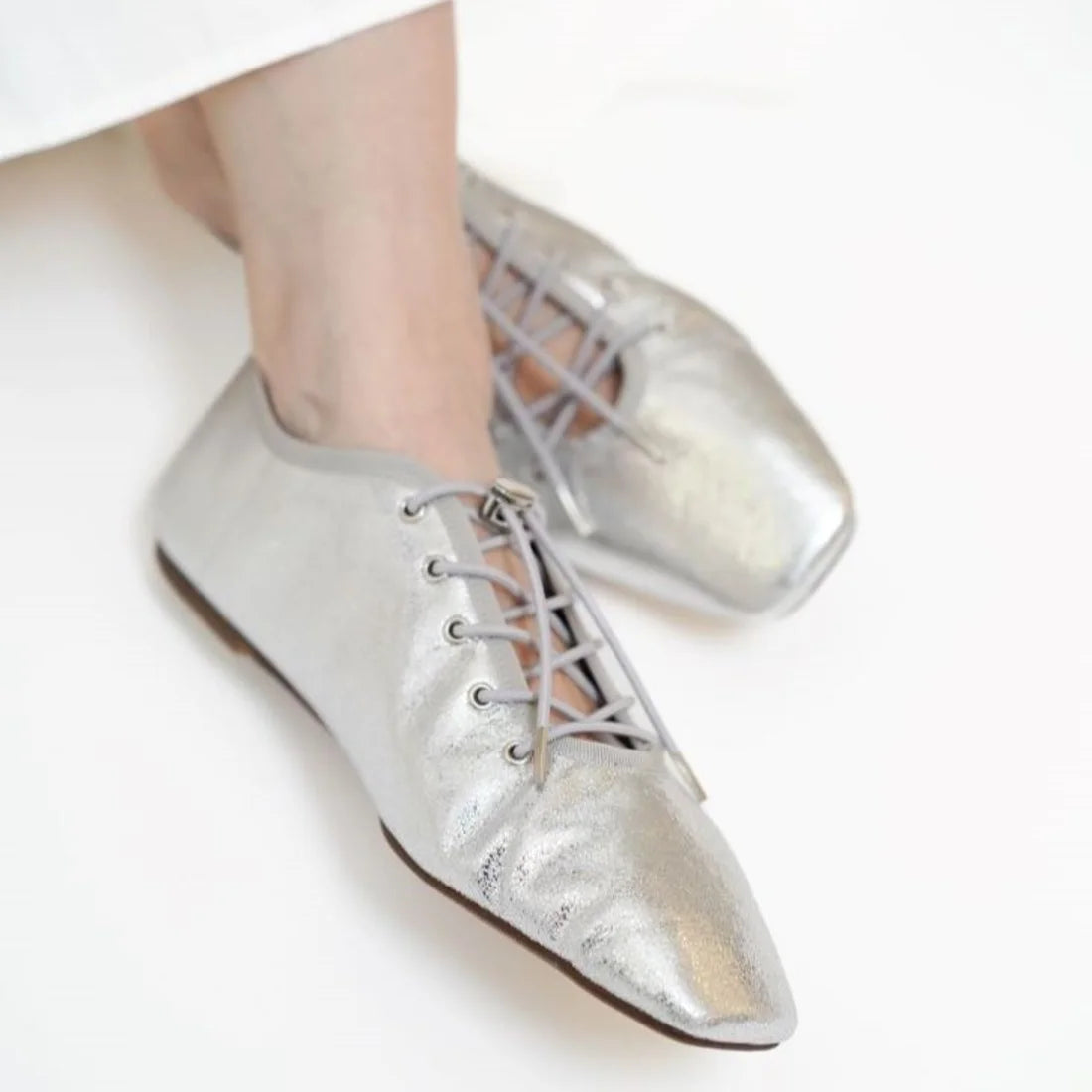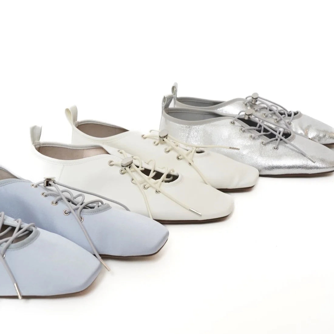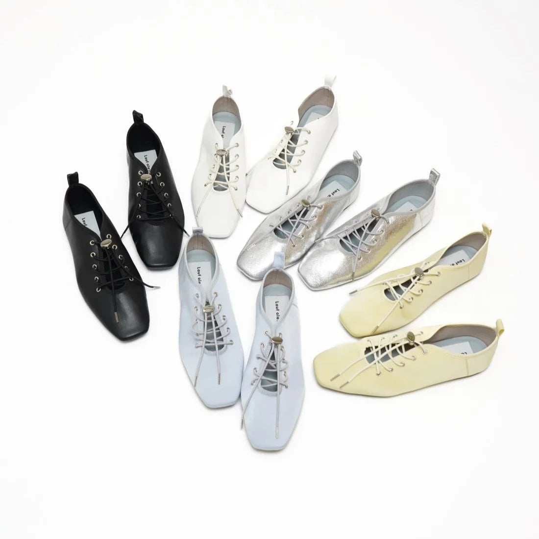 ・以芭蕾舞鞋為基礎的繫帶設計柔軟平底鞋。