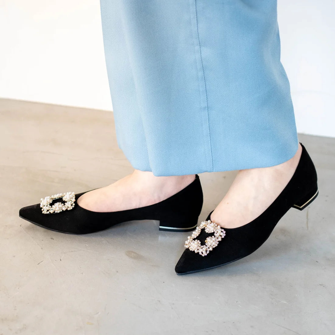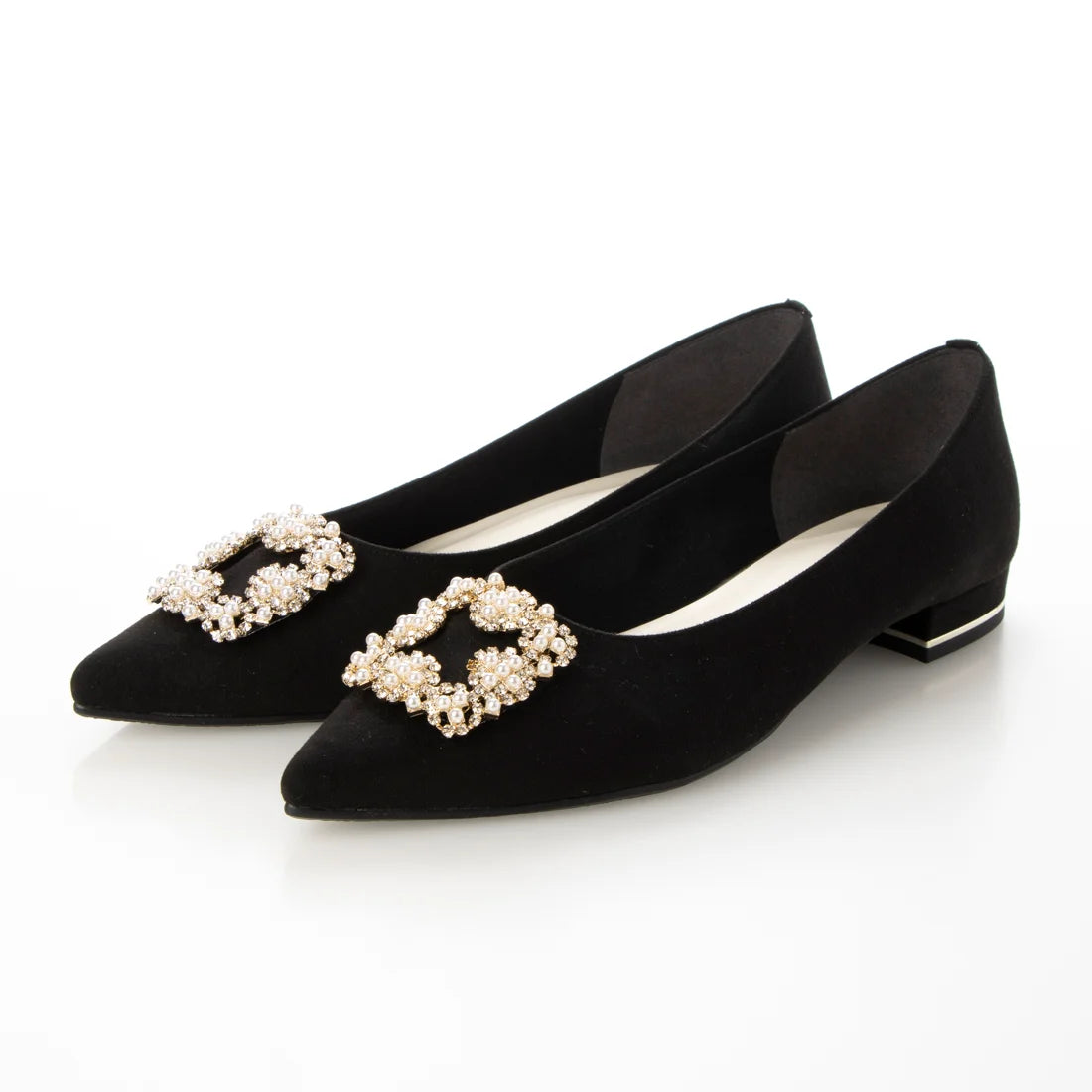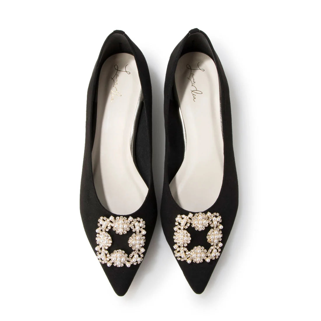 日本製 Launa Lea 寶石尖頭平底高跟鞋 (483) ( 黑色 Z / Black Z)