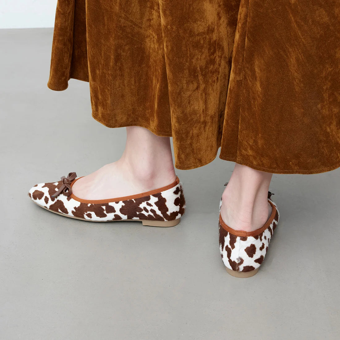 【新品預訂】日本製 Launa lea 方頭動物紋芭蕾鞋 (B7610A) (棕色 Z/C / Brown Z/C )
