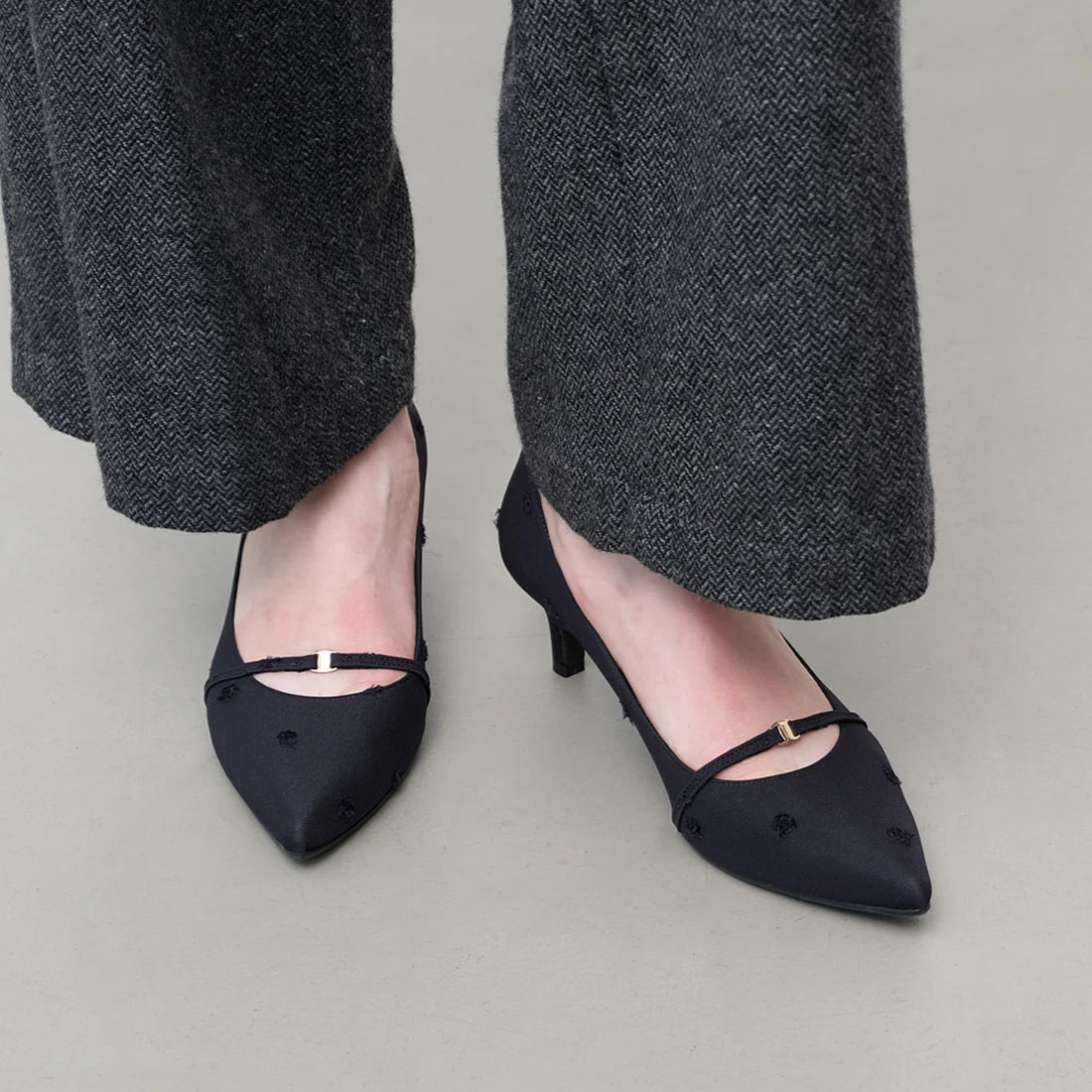 【新品預訂】日本製 Launa Lea 5cm踭高迷你金屬圖案高跟鞋 (610) (深藍色 Z / Navy Z)