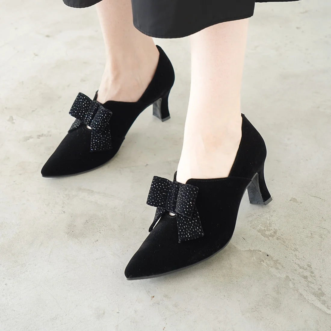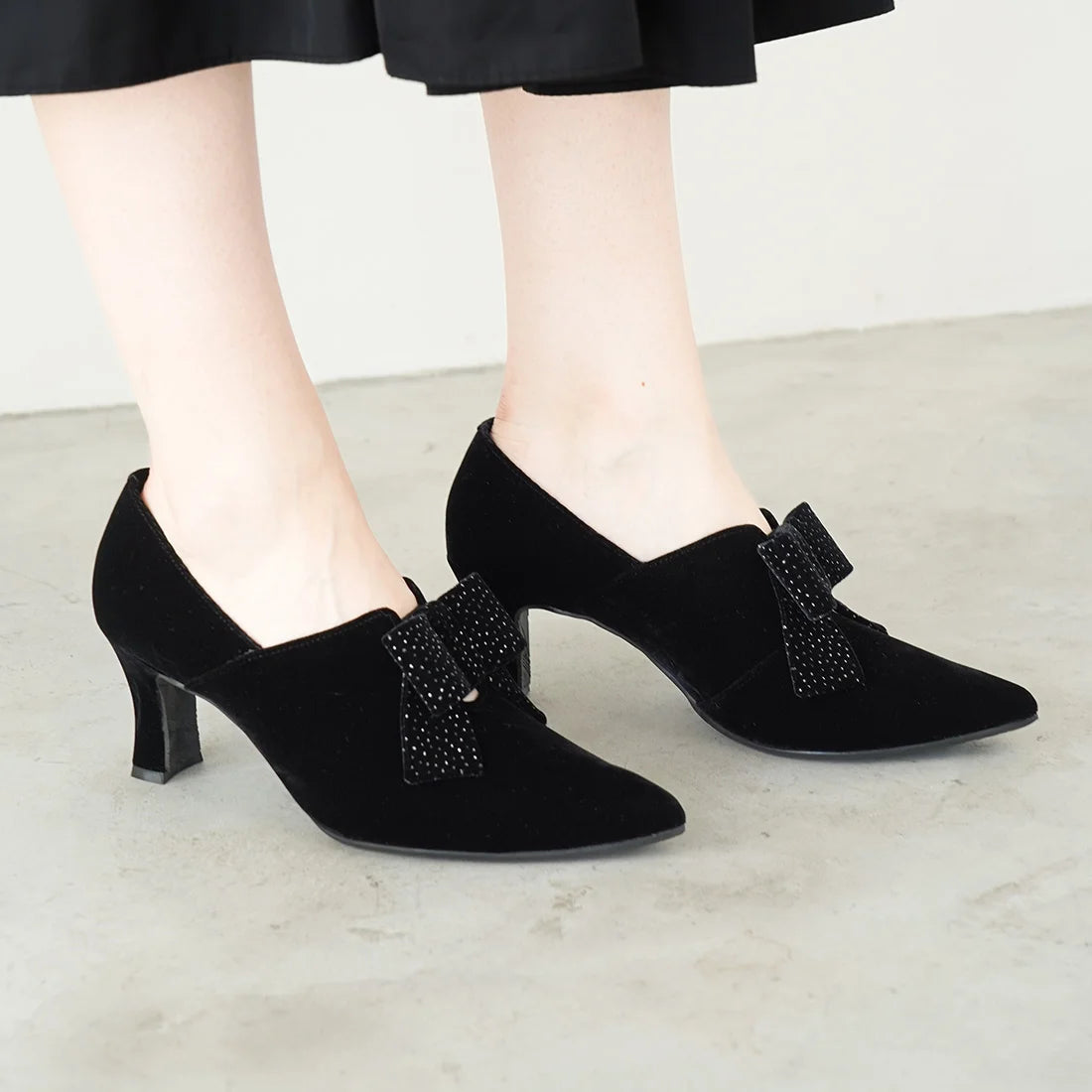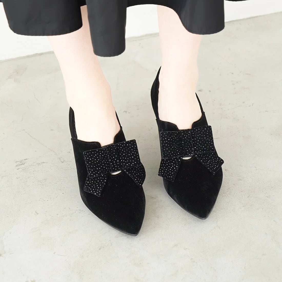 日本製 Launa Lea 7cm絲絨蝴蝶結短靴(585) (黑色 / Black Z/C)