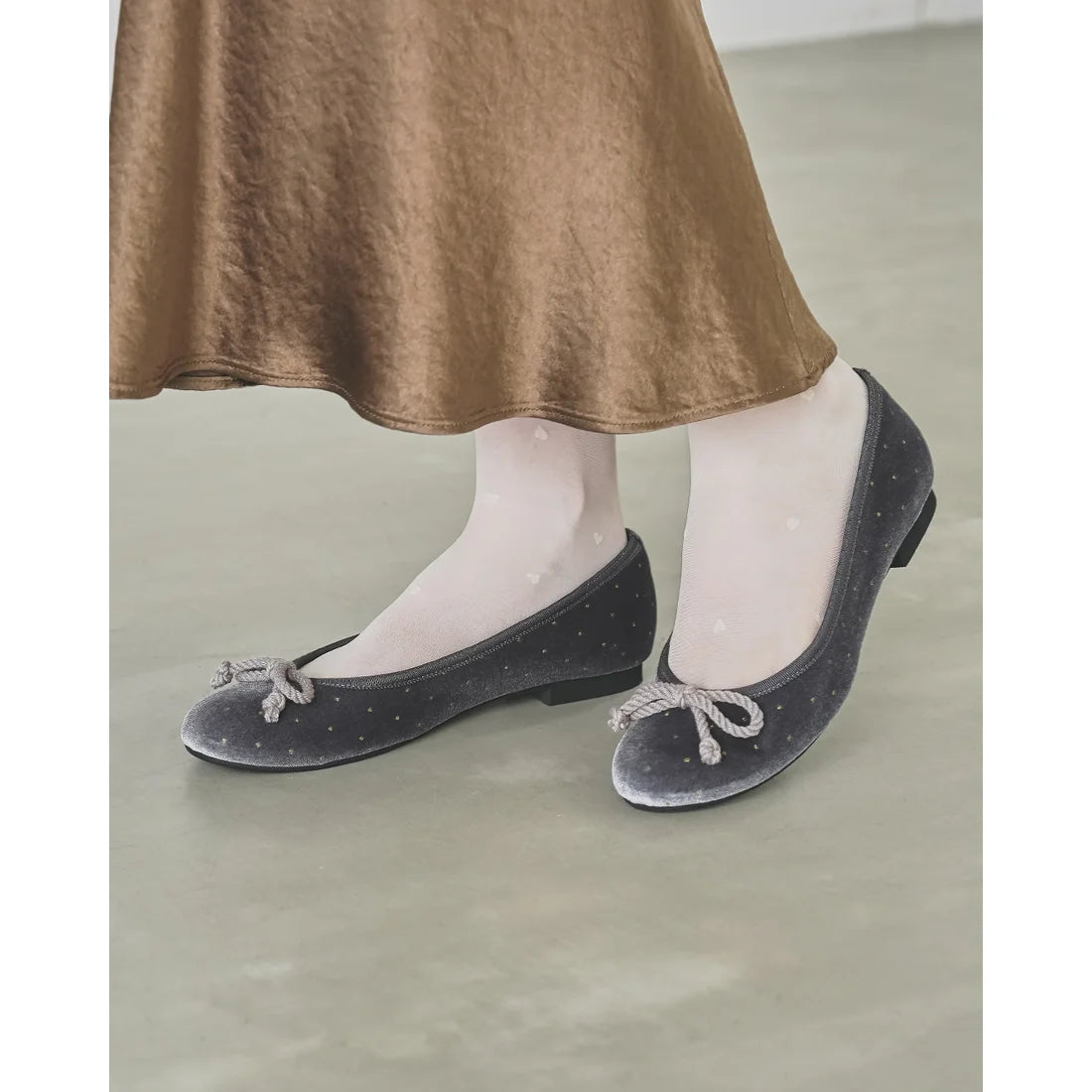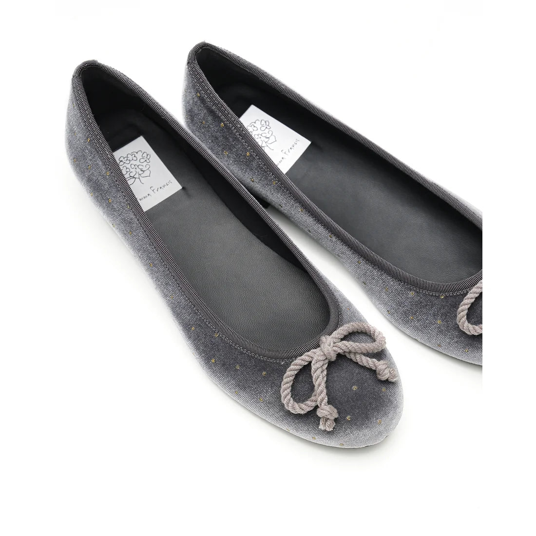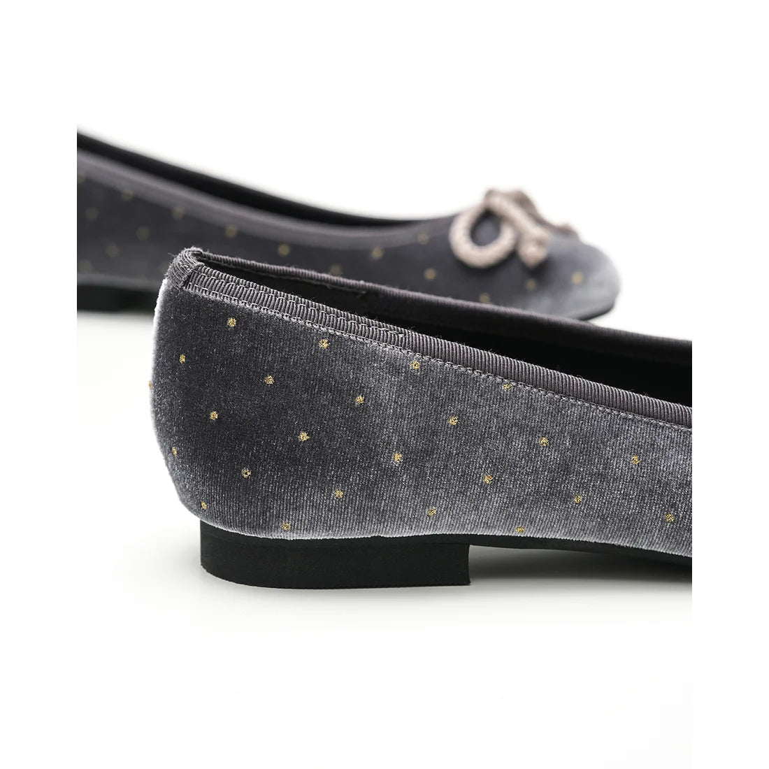 日本製Emma Francis 圓點天鵝絨平底芭蕾舞鞋(灰色天鵝絨)(02a-V 153)