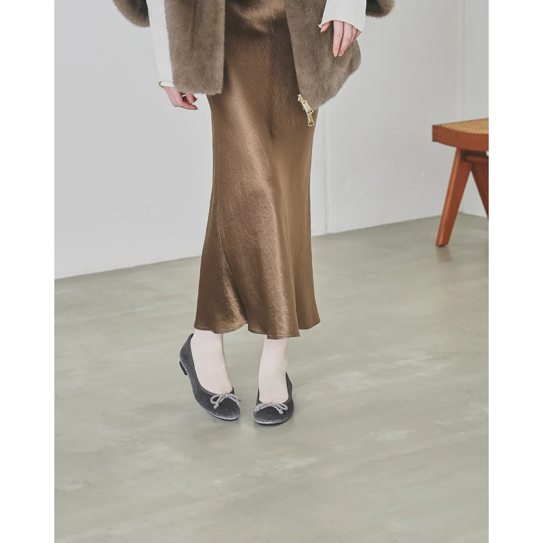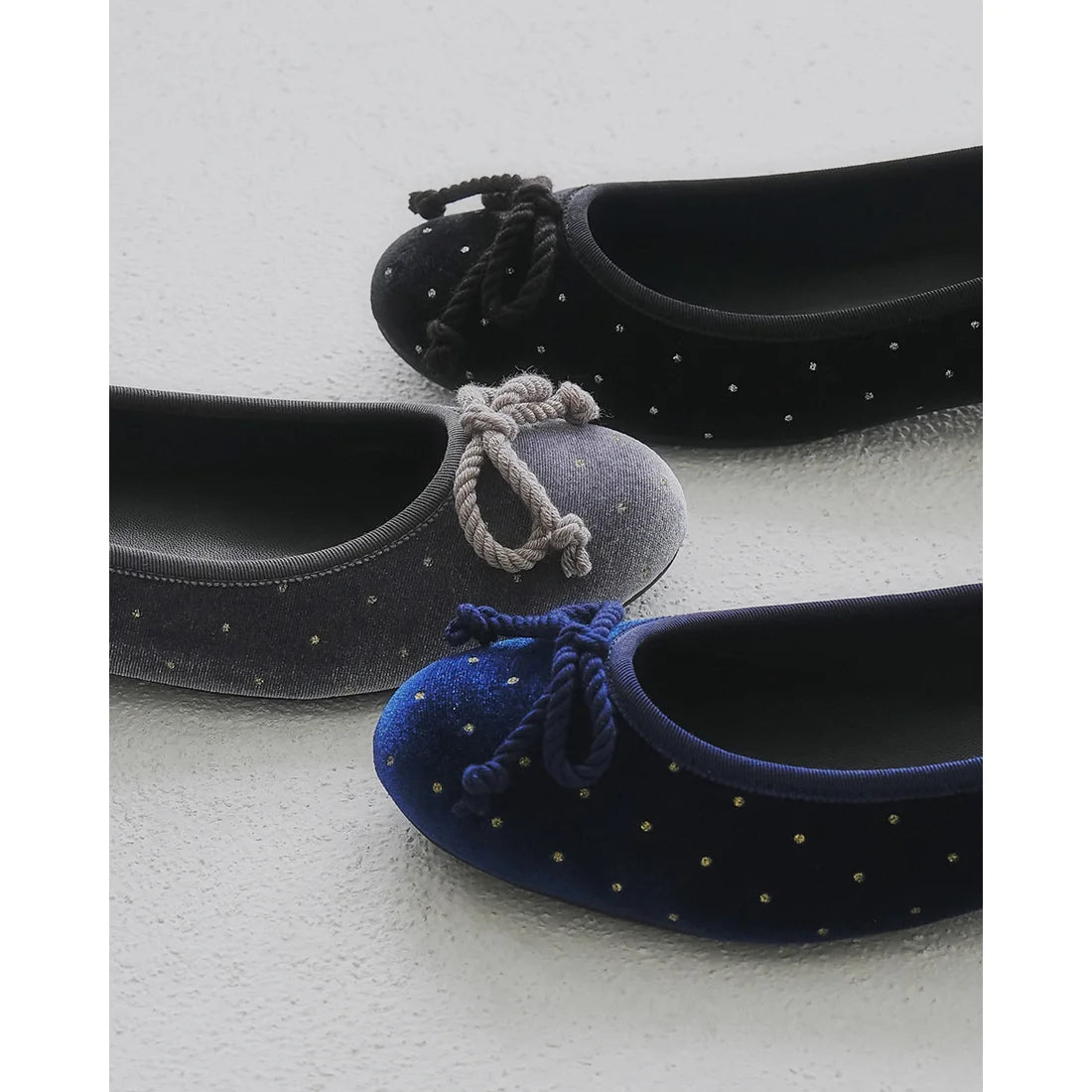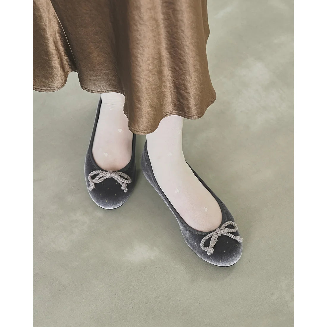 日本製Emma Francis 圓點天鵝絨平底芭蕾舞鞋(灰色天鵝絨)(02a-V 153)