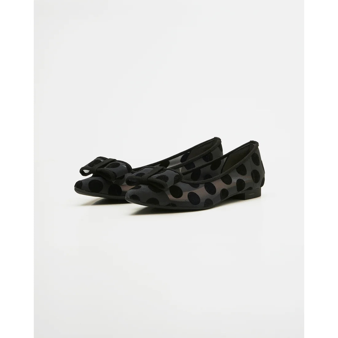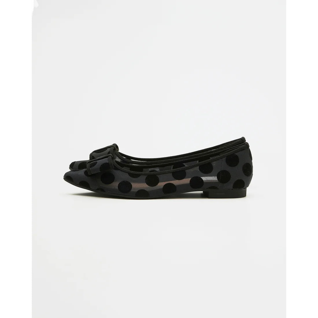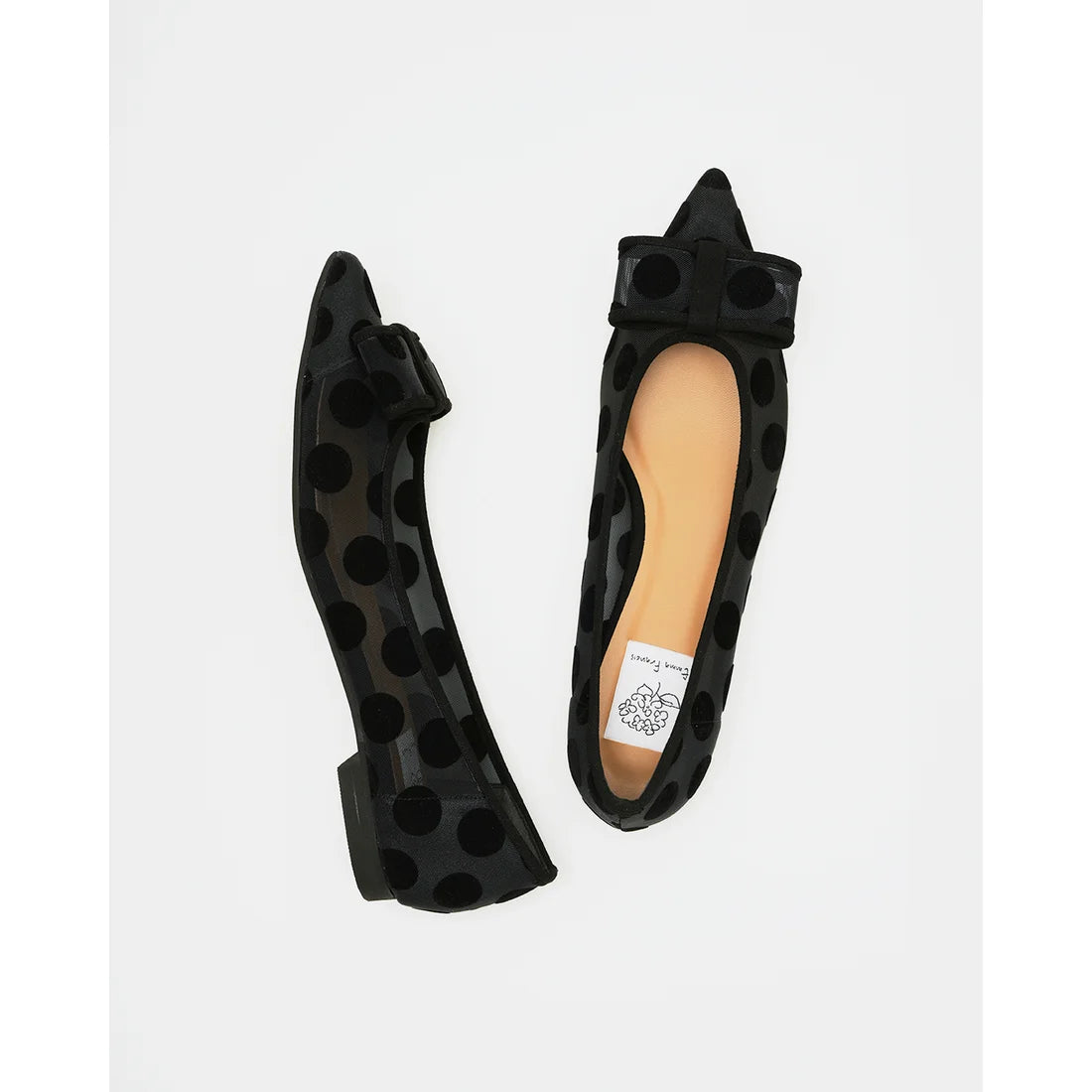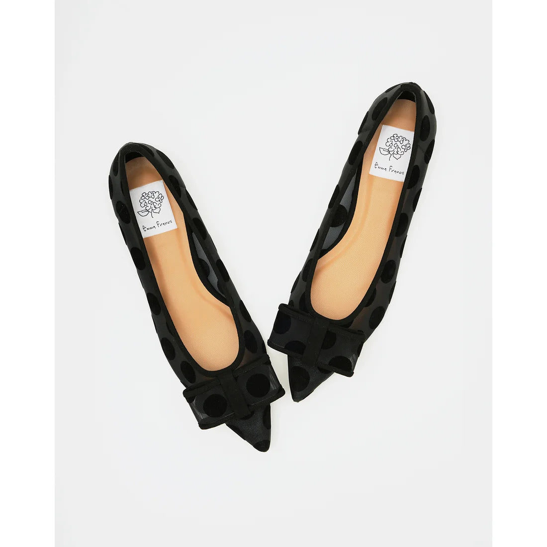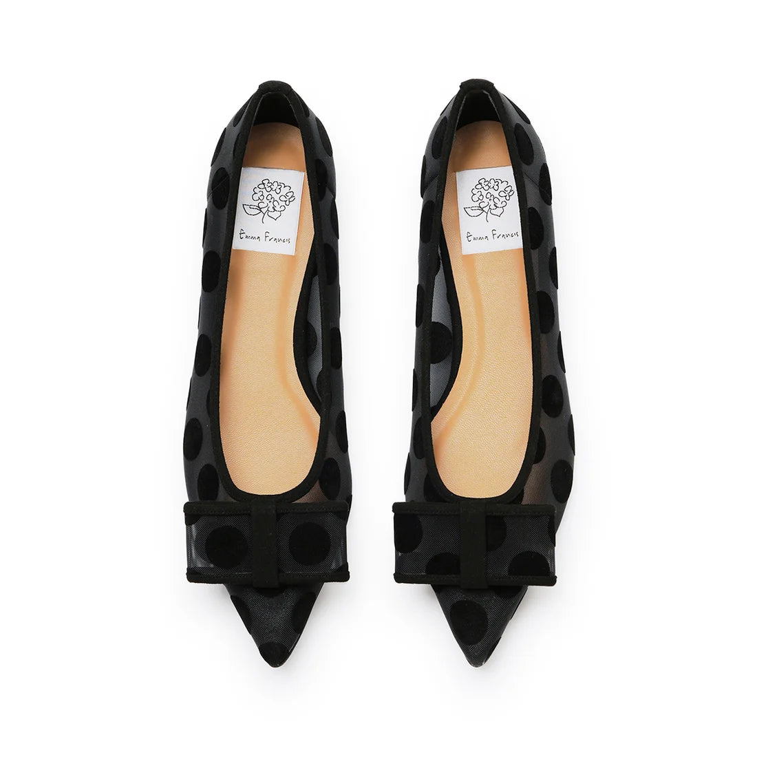 日本製Emma Francis 絨點薄紗蝴蝶結鞋(黑色薄紗) (04f-T 101)