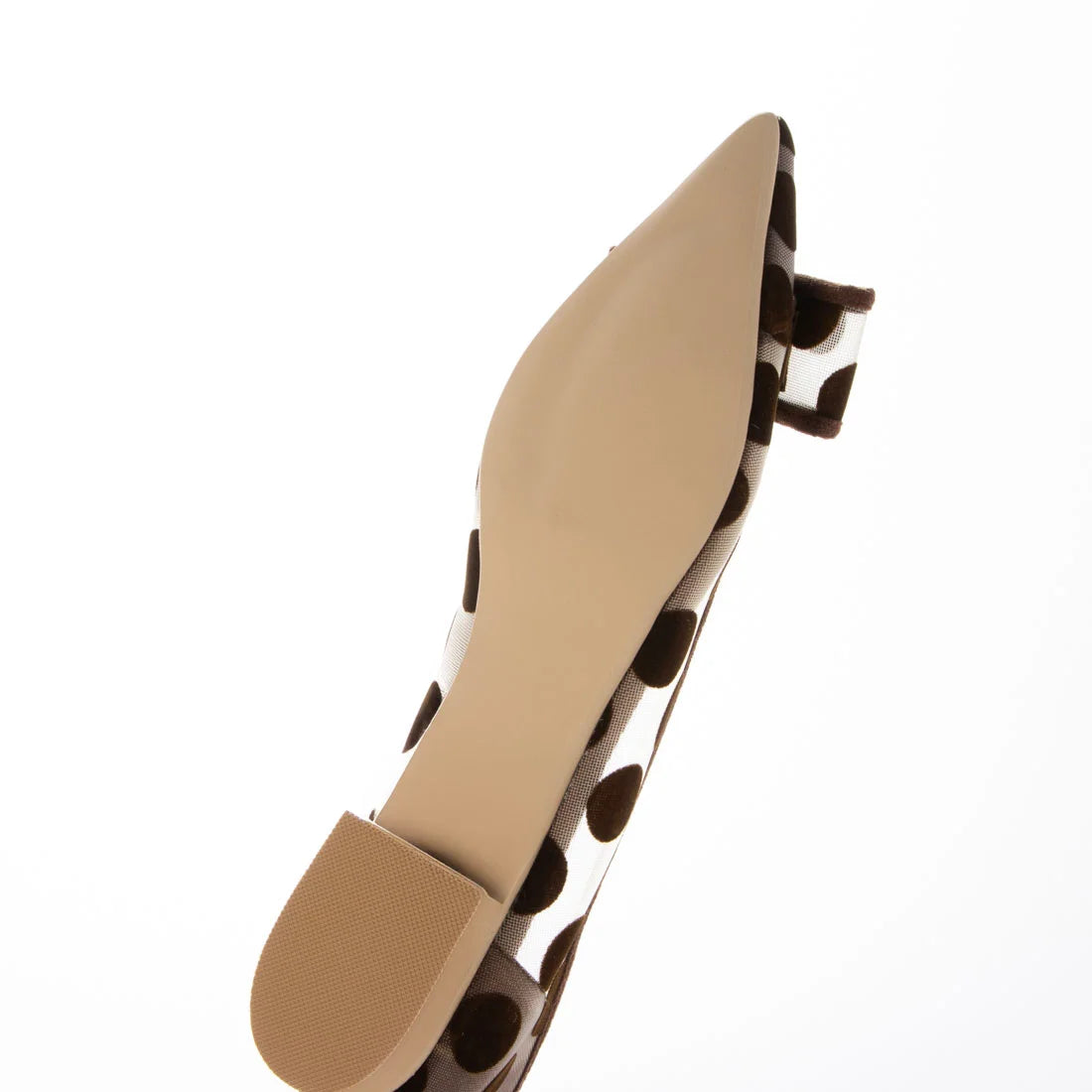 • 鞋頭設計細長,卻因柔軟的薄紗材質而穿著舒適極