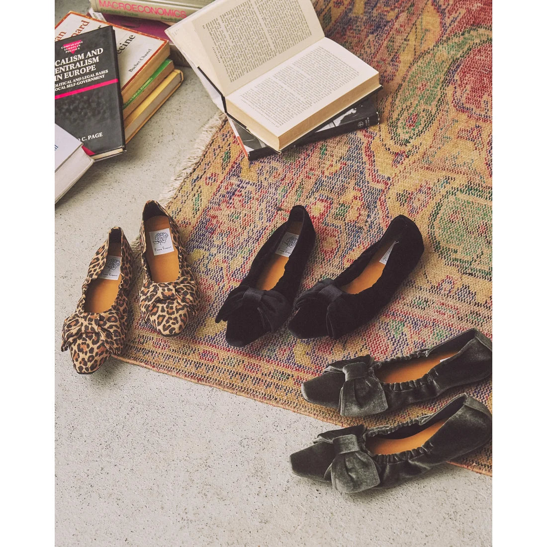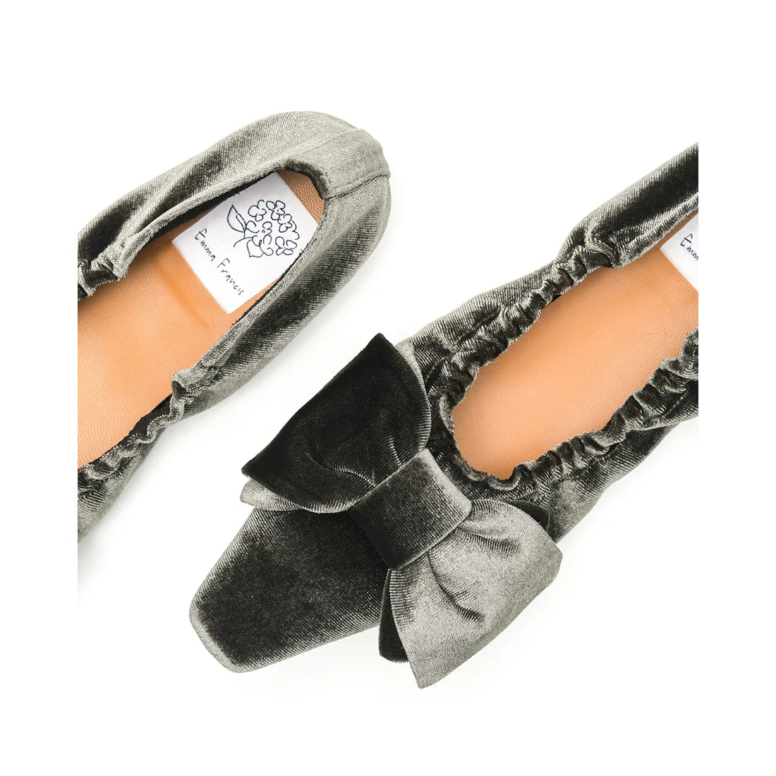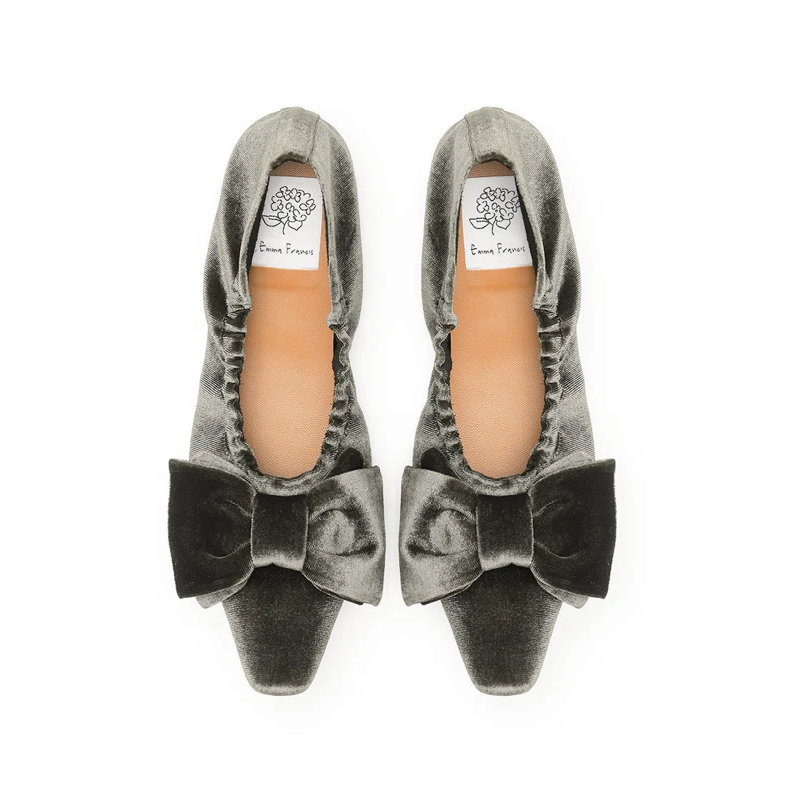 【新品預訂】日本製Emma Francis 天鵝絨大蝴蝶結褶皺平底鞋(灰色)( 08g V153) GRY