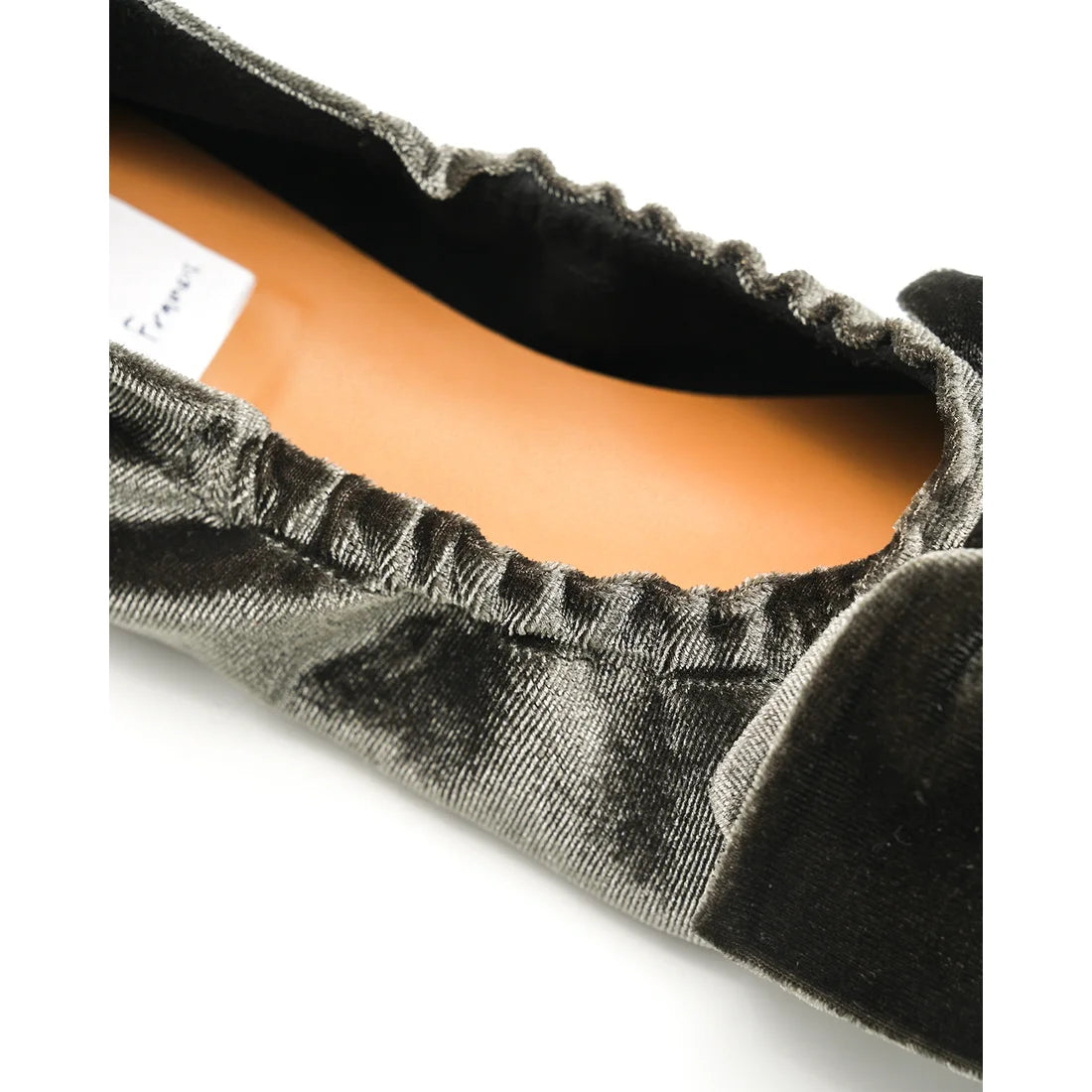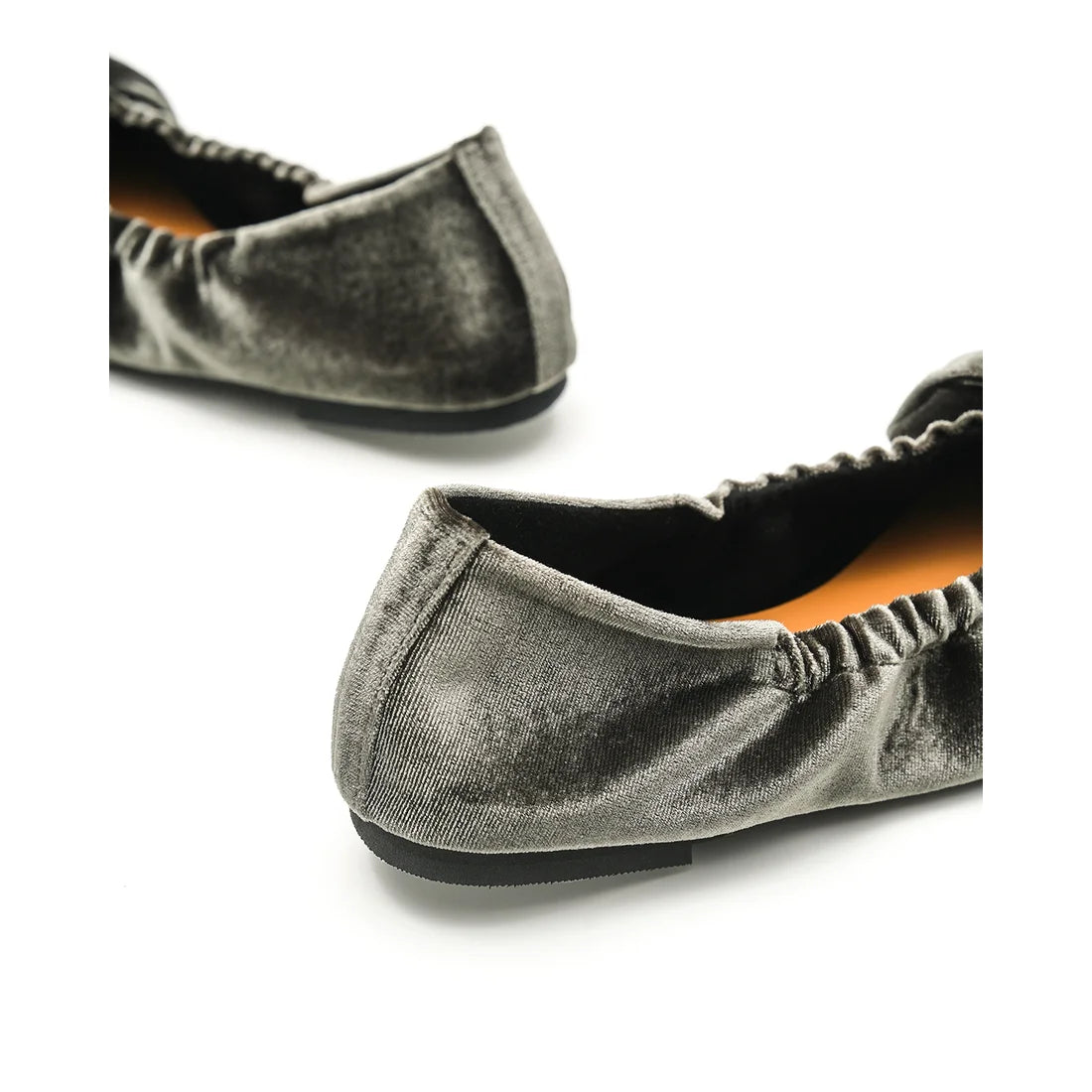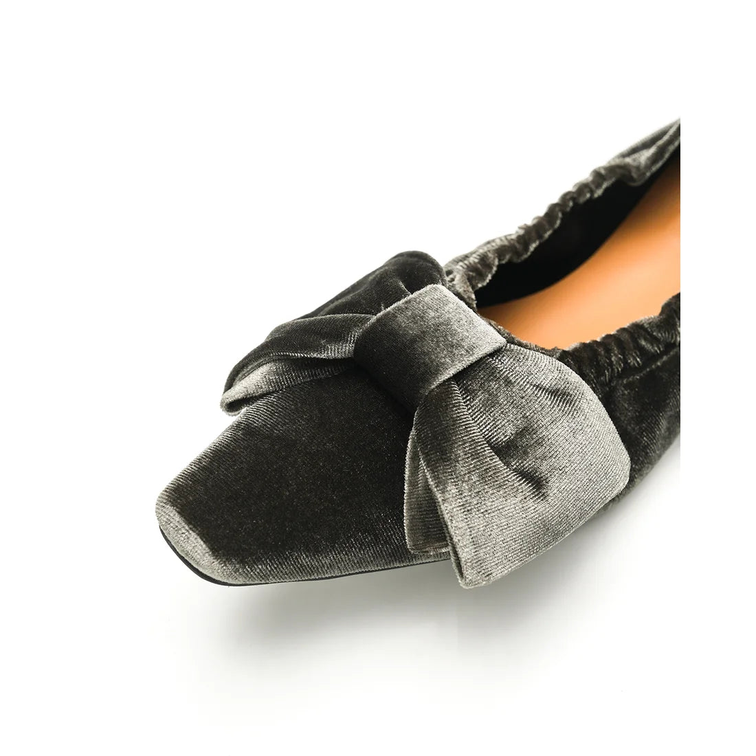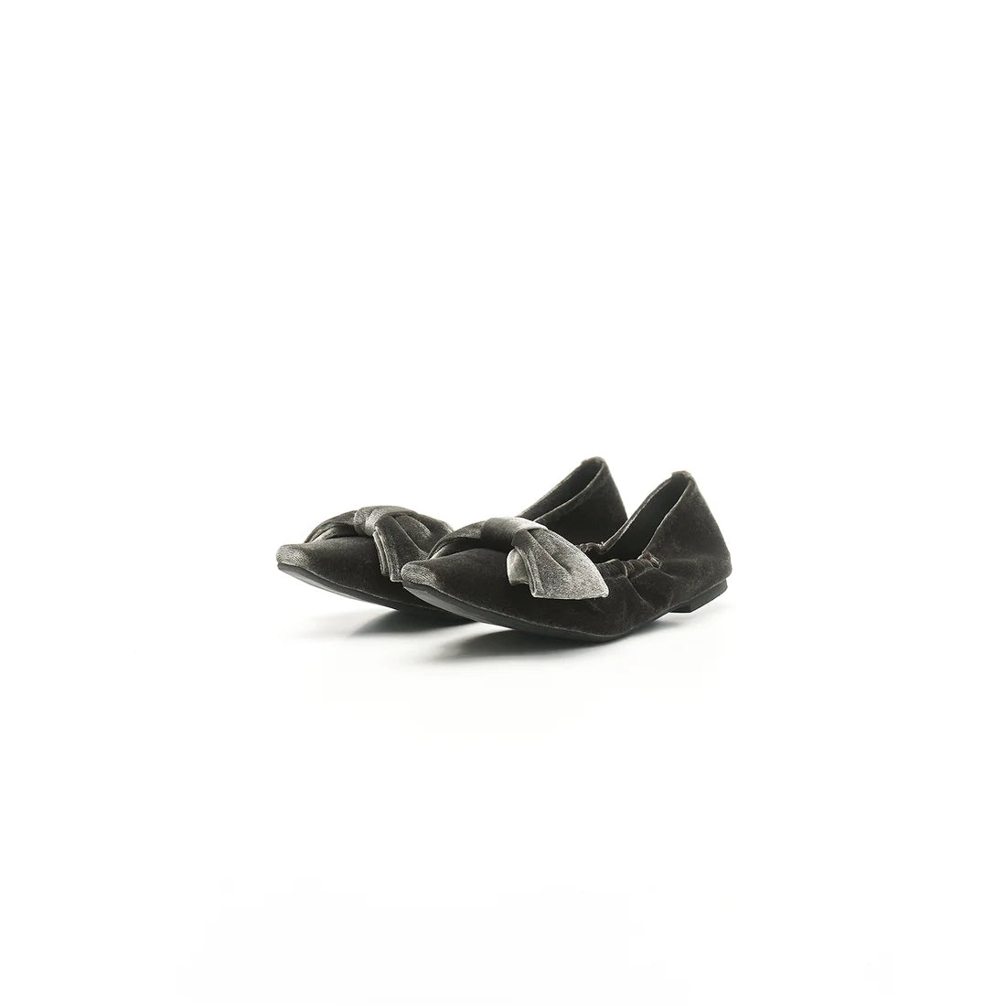 日本製Emma Francis 天鵝絨大蝴蝶結褶皺平底鞋(灰色)( 08g V153)