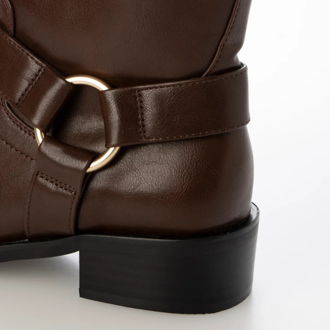 以環扣與雙層皮帶為設計亮點的工程靴。