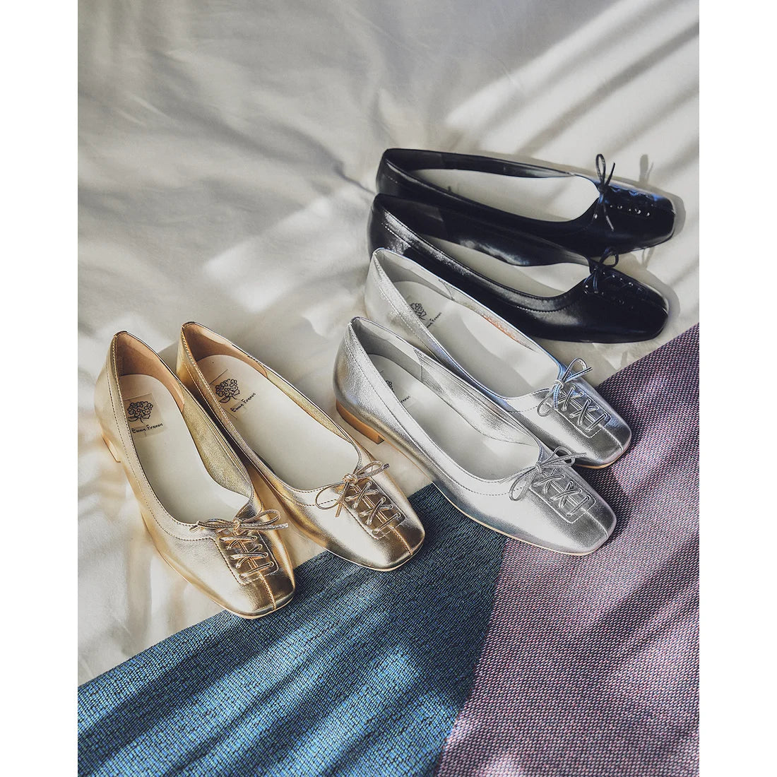 【新品】日本製Emma Francis 綁帶蝴蝶結平底鞋(黑色)(03ab-M 101)