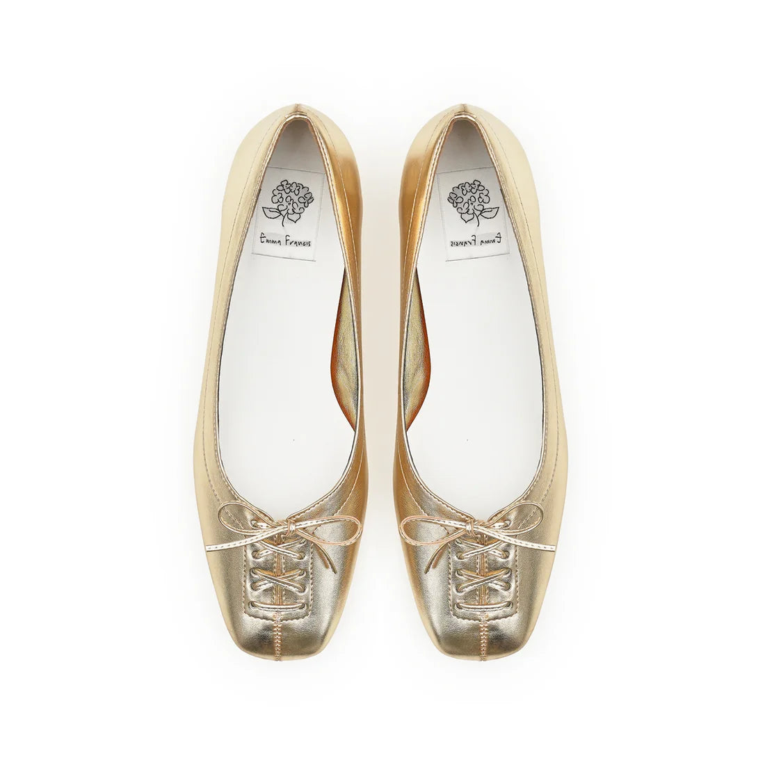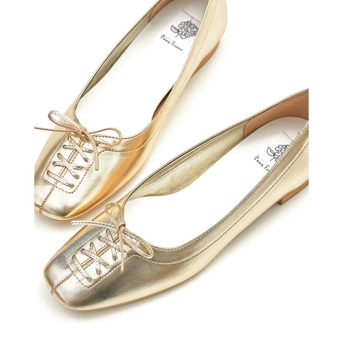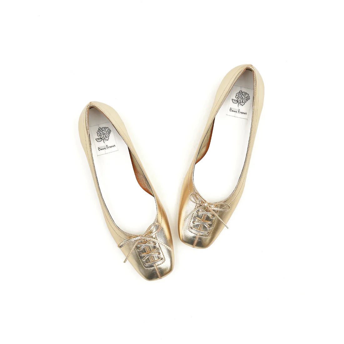 【新品預訂】日本製Emma Francis 綁帶蝴蝶結平底鞋(金色)(03ab-M 165)