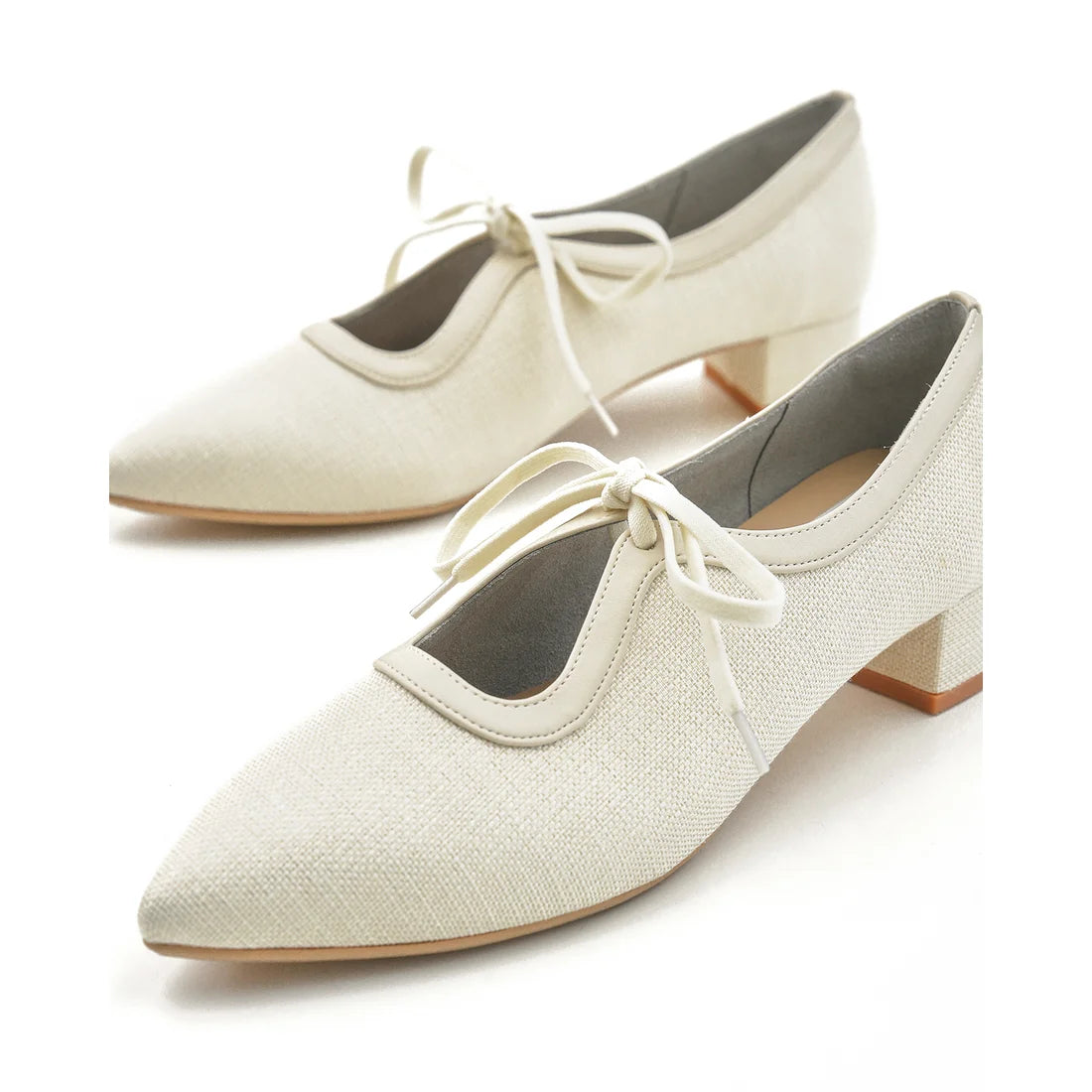 【新品預訂】日本製Emma Francis 3cm踭 經典蝴蝶結高跟鞋(象牙色)(3002g-Z 177)