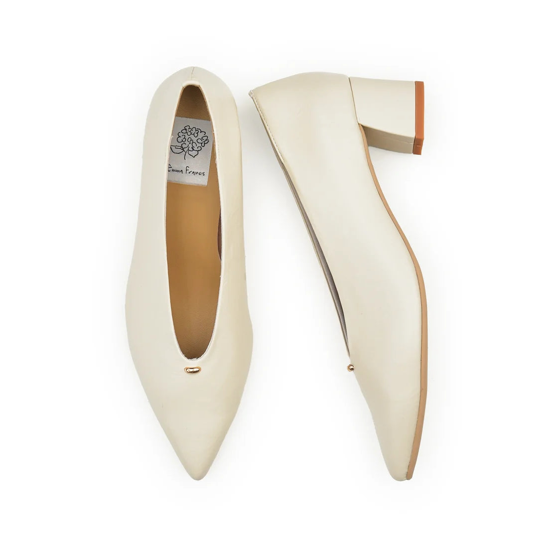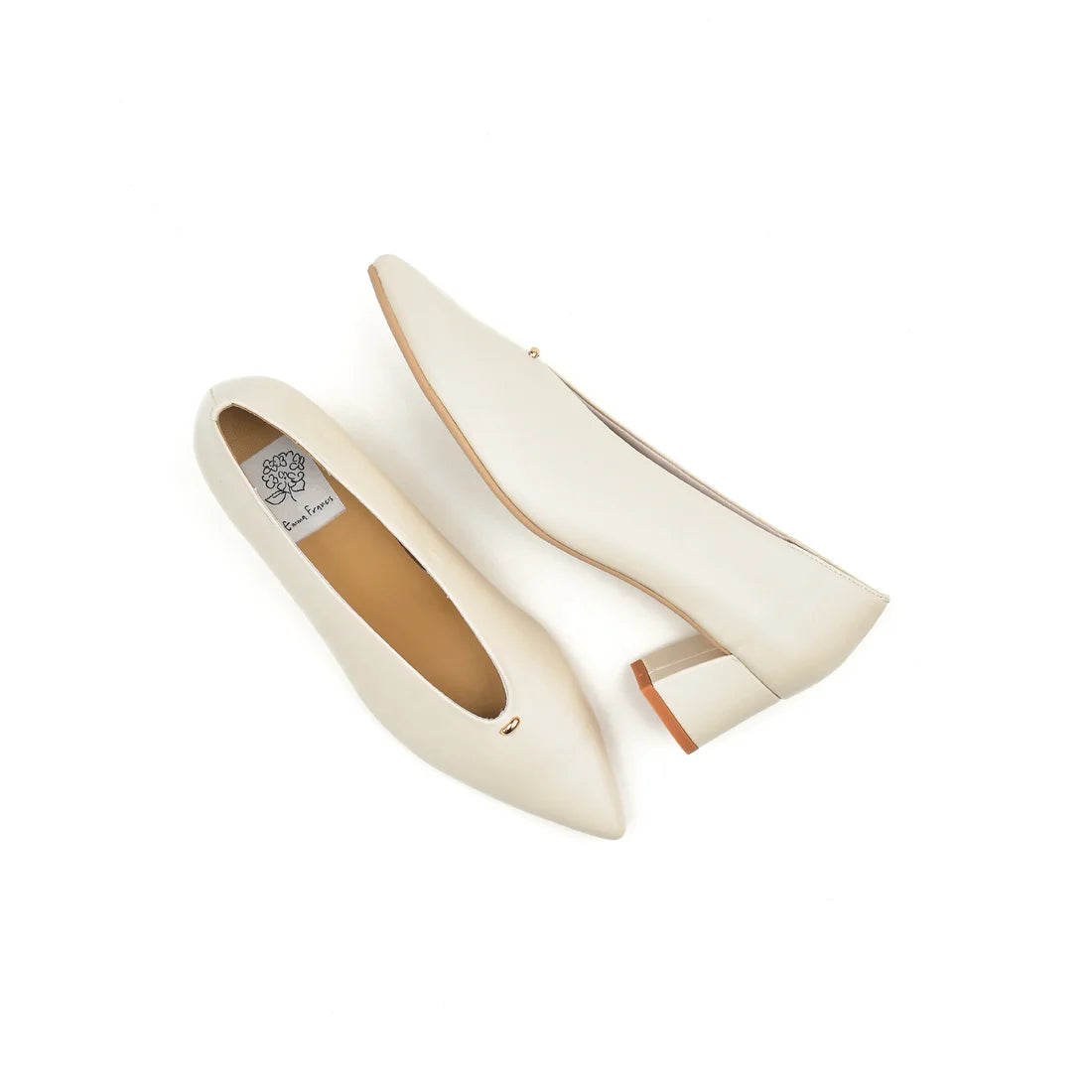 【新品】日本製Emma Francis4.5cm踭金色小配件柔軟高跟鞋 (象牙色光滑)(4502a-P 177)