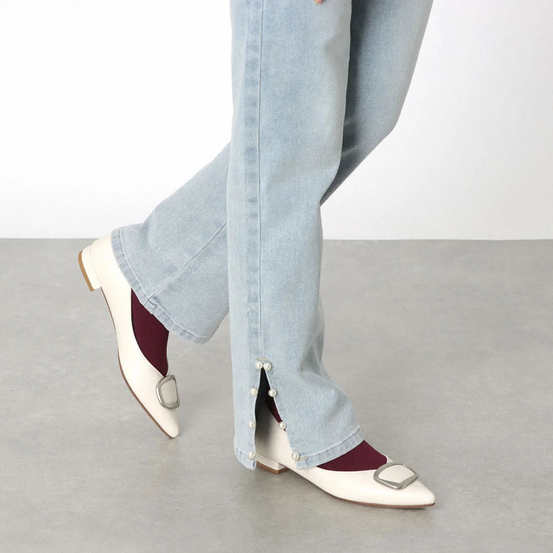 【新品預訂】日本製 Lauf Oletta [All Weather] 全天候 防水尖頭金扣平底鞋(LRH127 Ivory) (象牙色)